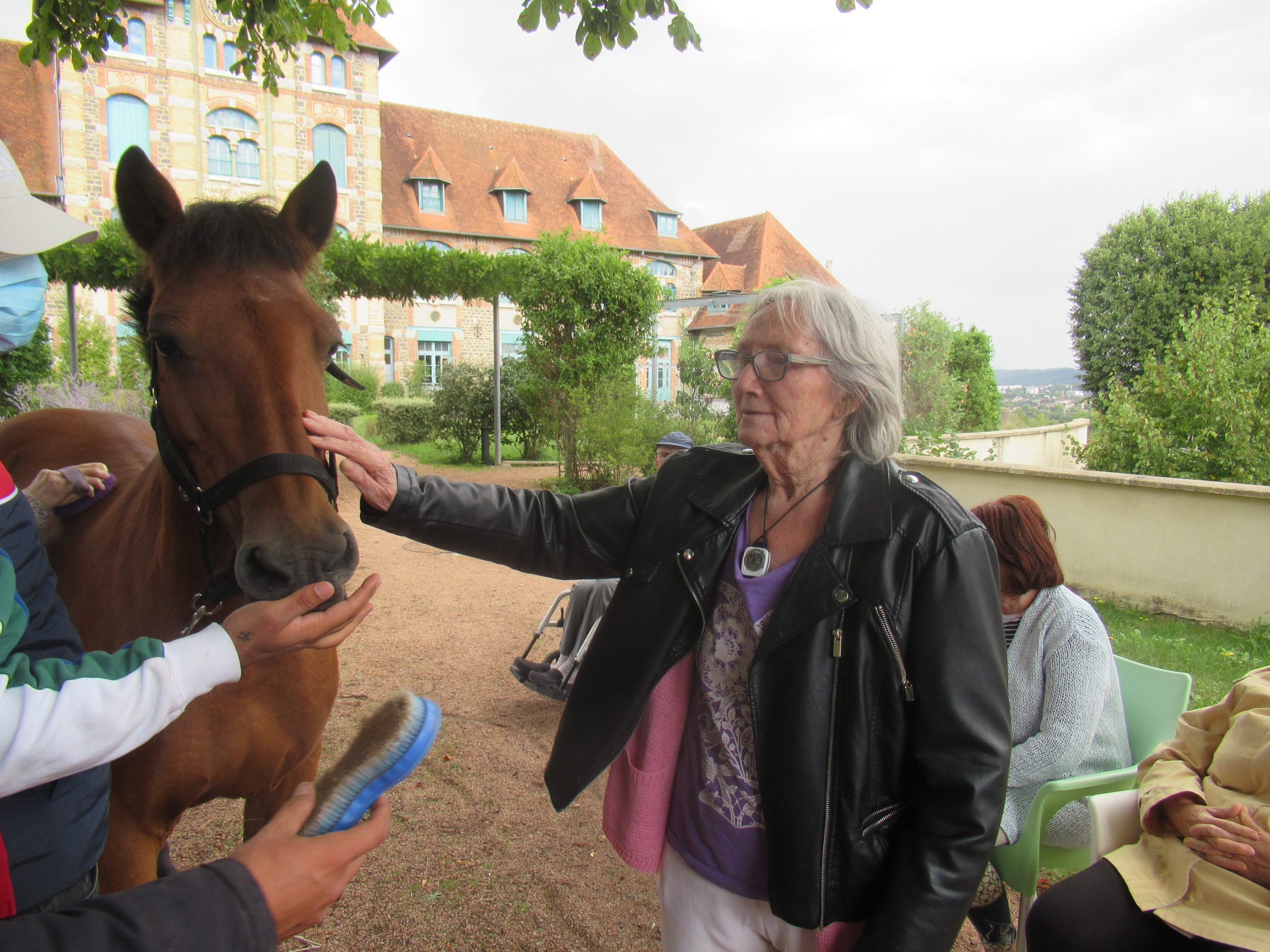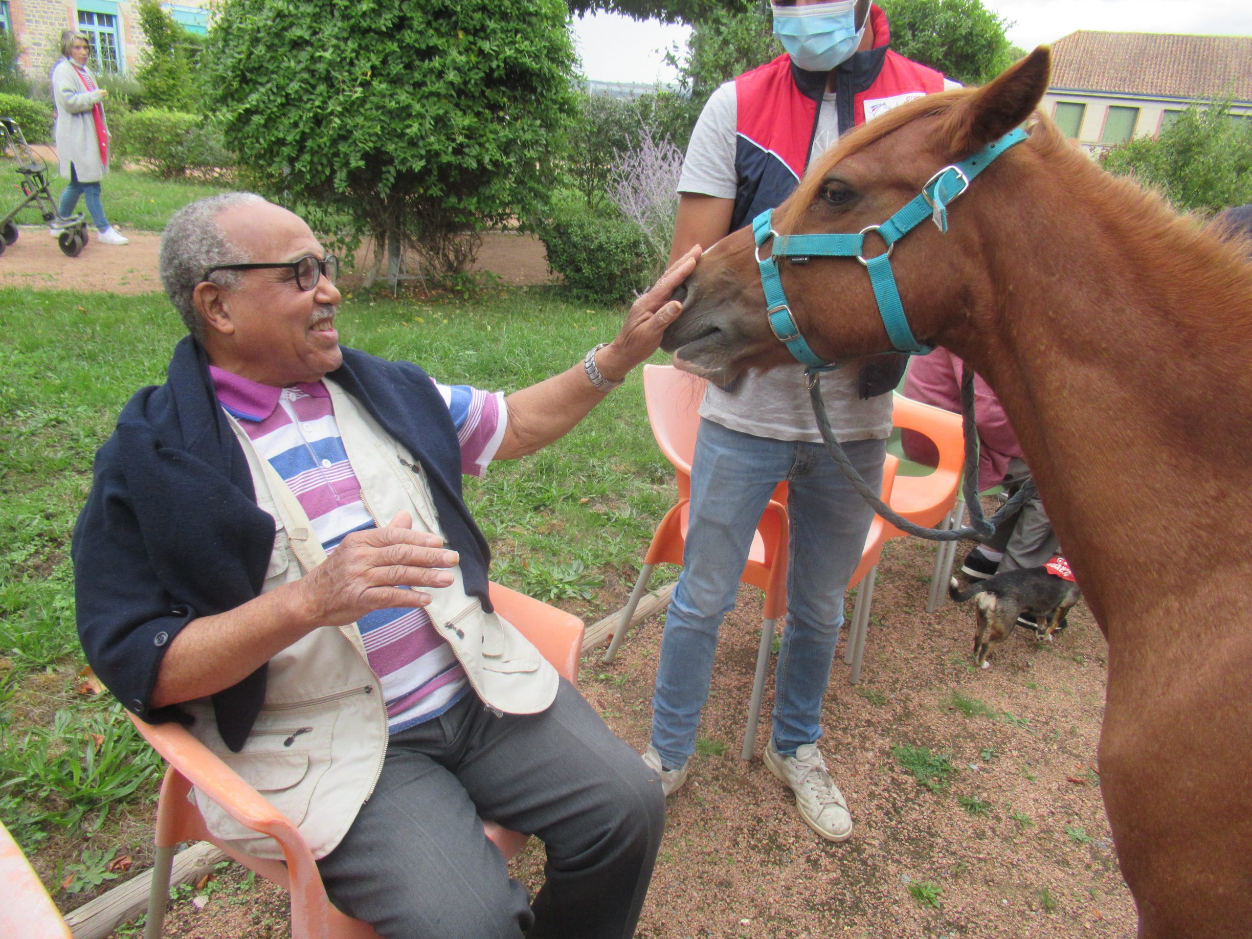 Le 9 septembre, malgré une météo quelque peu désagréable, Charles et ses chevaux sont venus nous rendre une petite visite. Malgré un léger crachin en début d’après-midi, et une arrivée tardive du soleil, les résidents n’ont pas hésité a sortir les pulls pour aller câliner les chevaux.