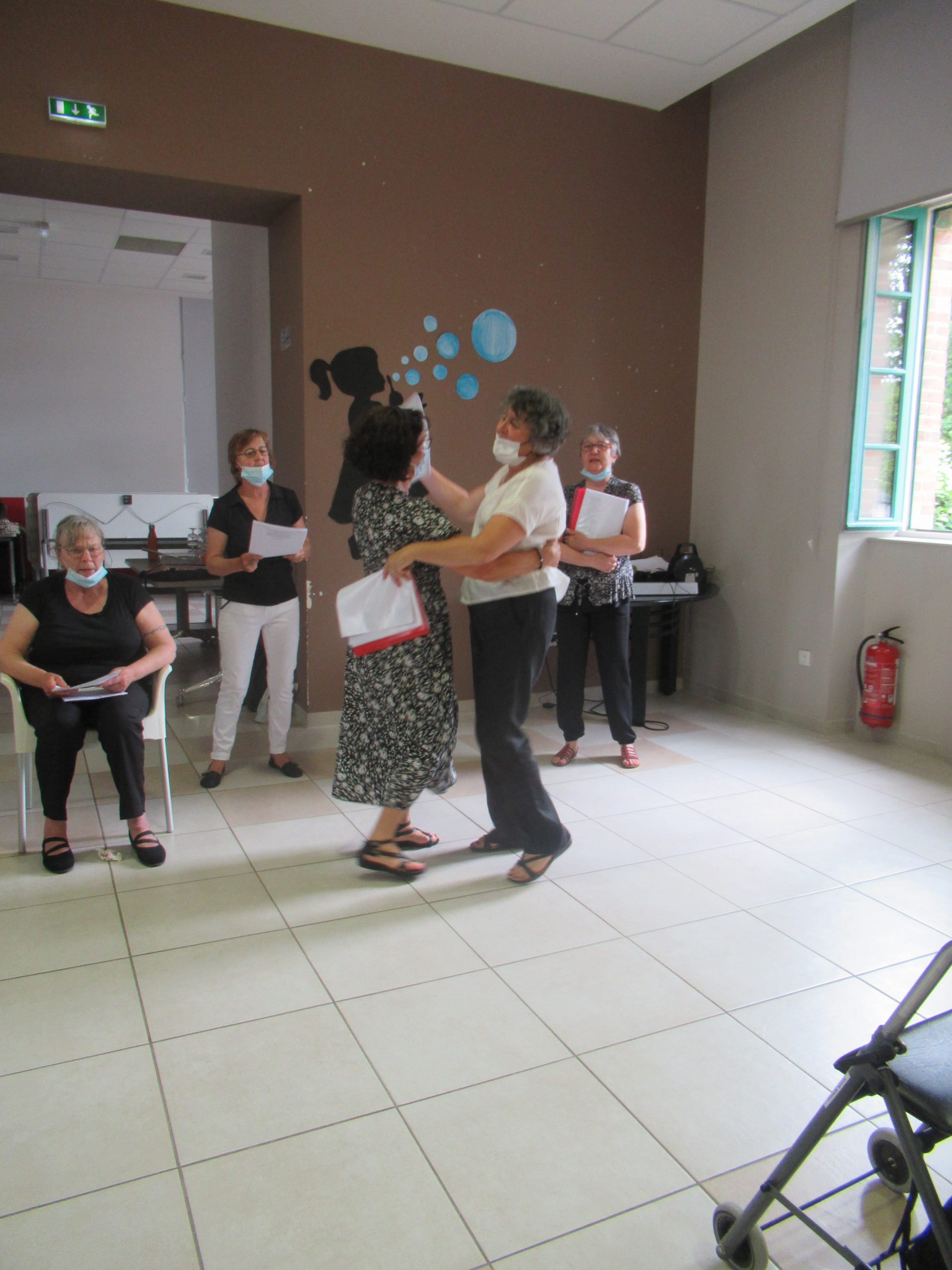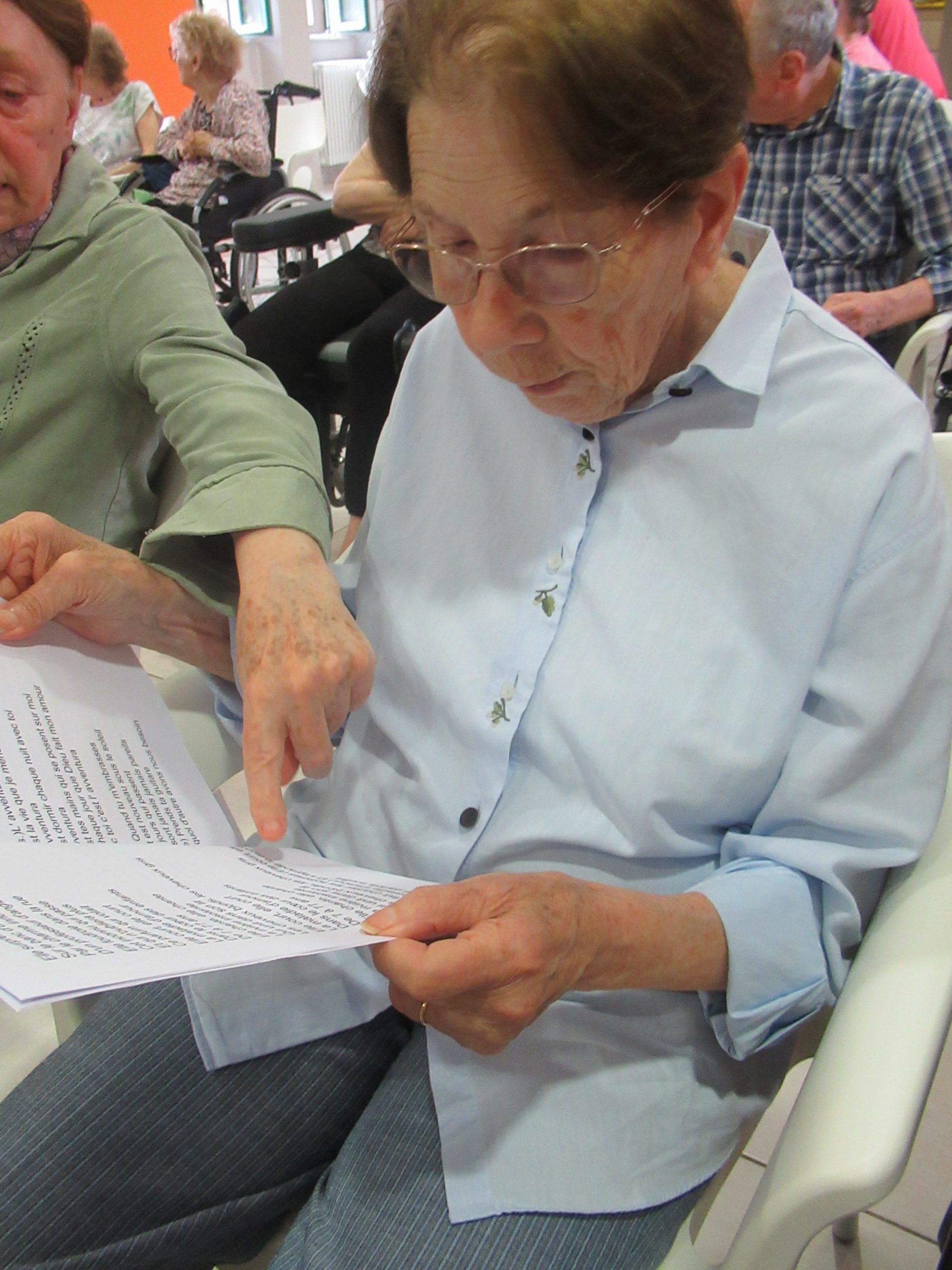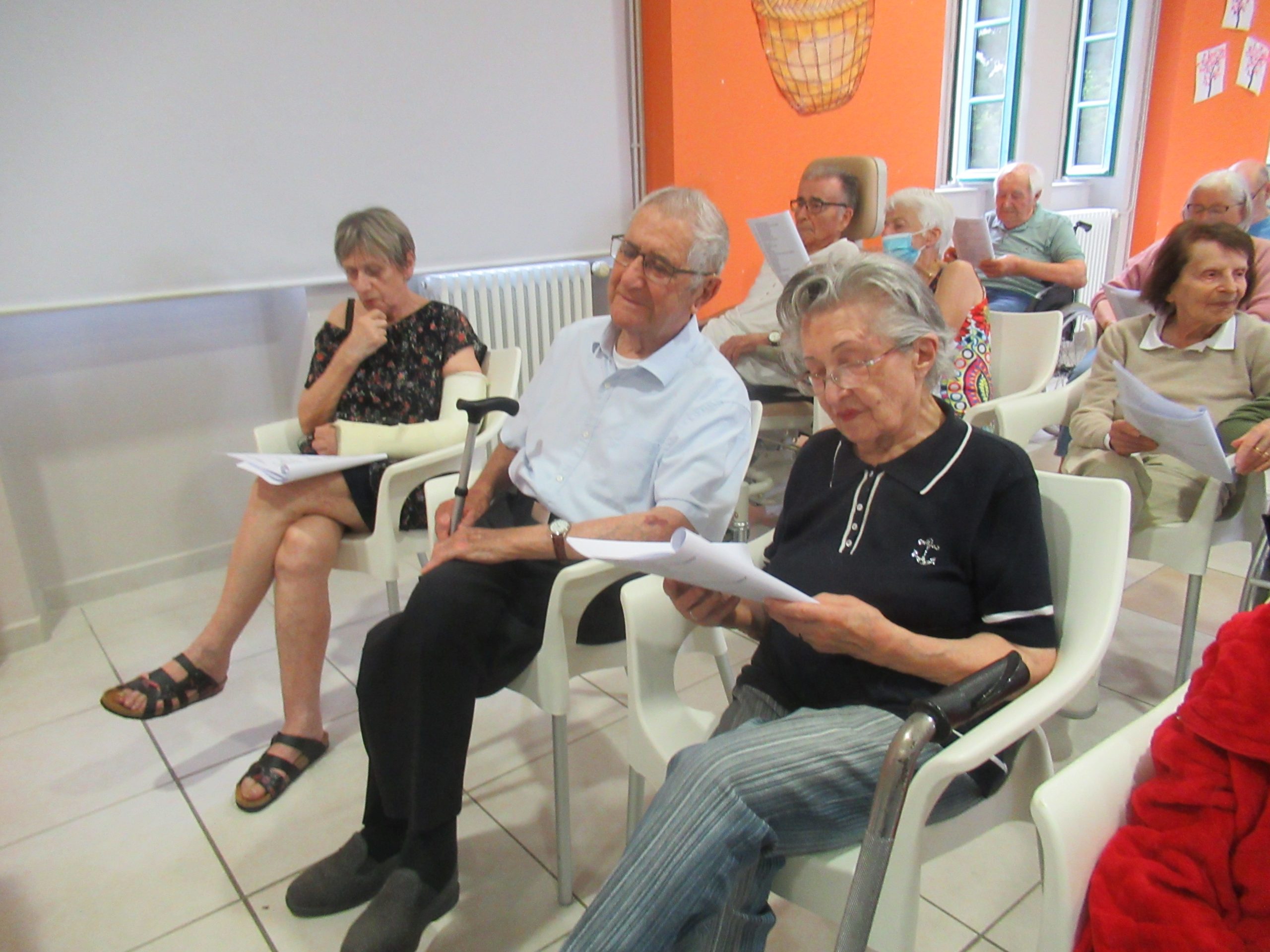Après quelques mois à apprendre et répéter un répertoire bien déterminé, les bénévoles et les résidents se sont retrouvés pour un moment de partage musical. Au programme des titres bien connus comme « la maladie d’amour » ou « voulez-vous danser grand-mère? » et d’autres titres faisant référence à la saison estivale débutante ( » tout nu et tout bronzé »).