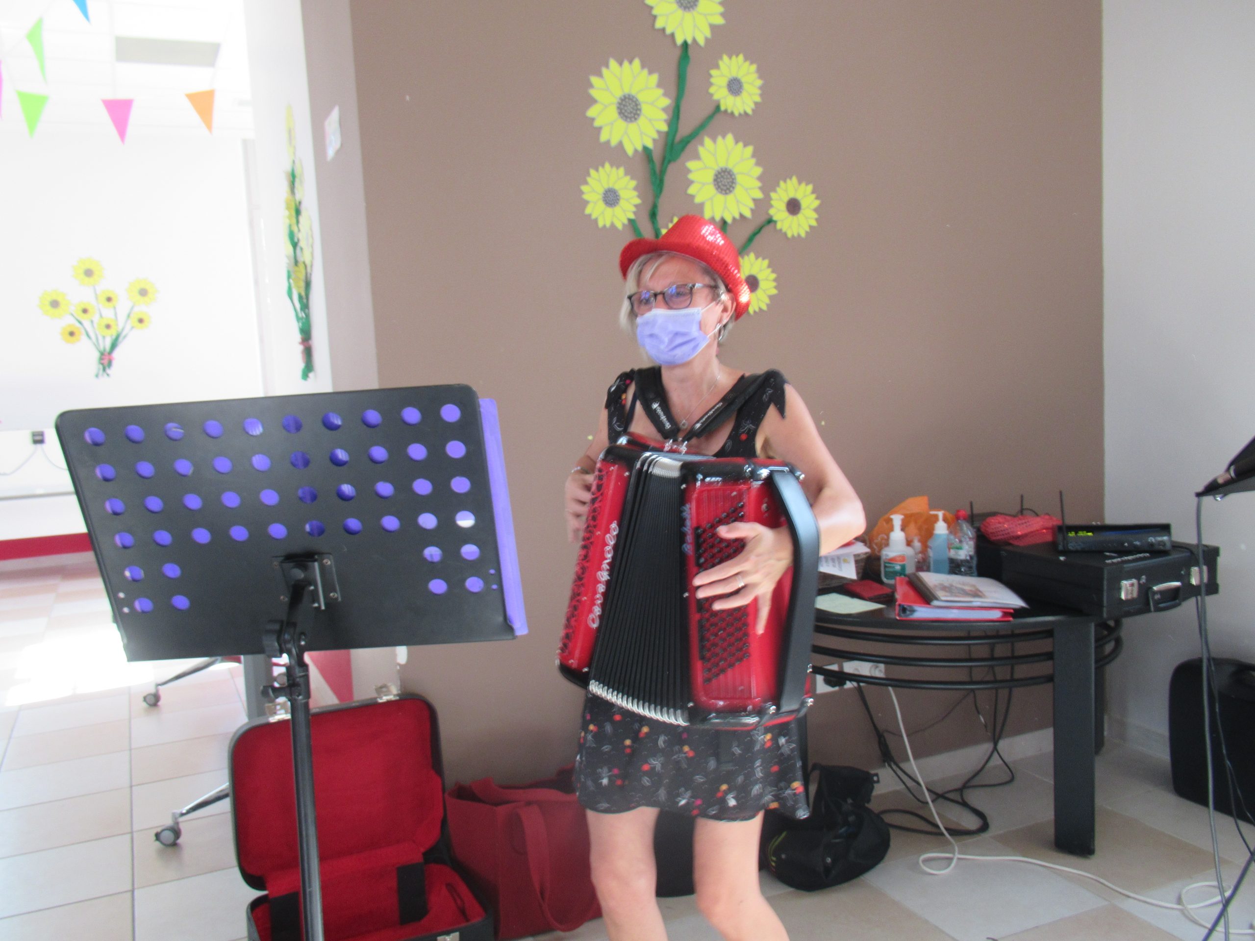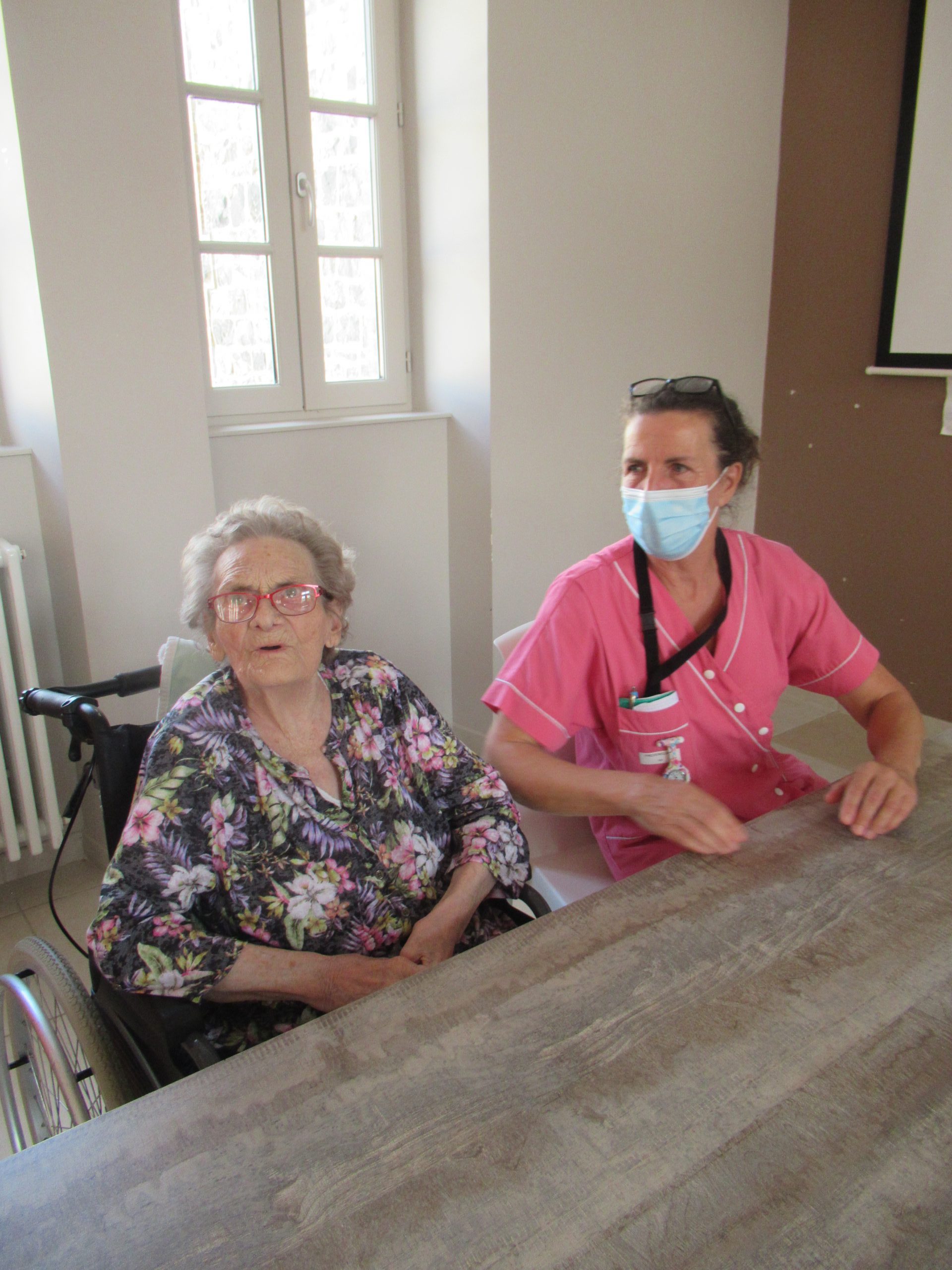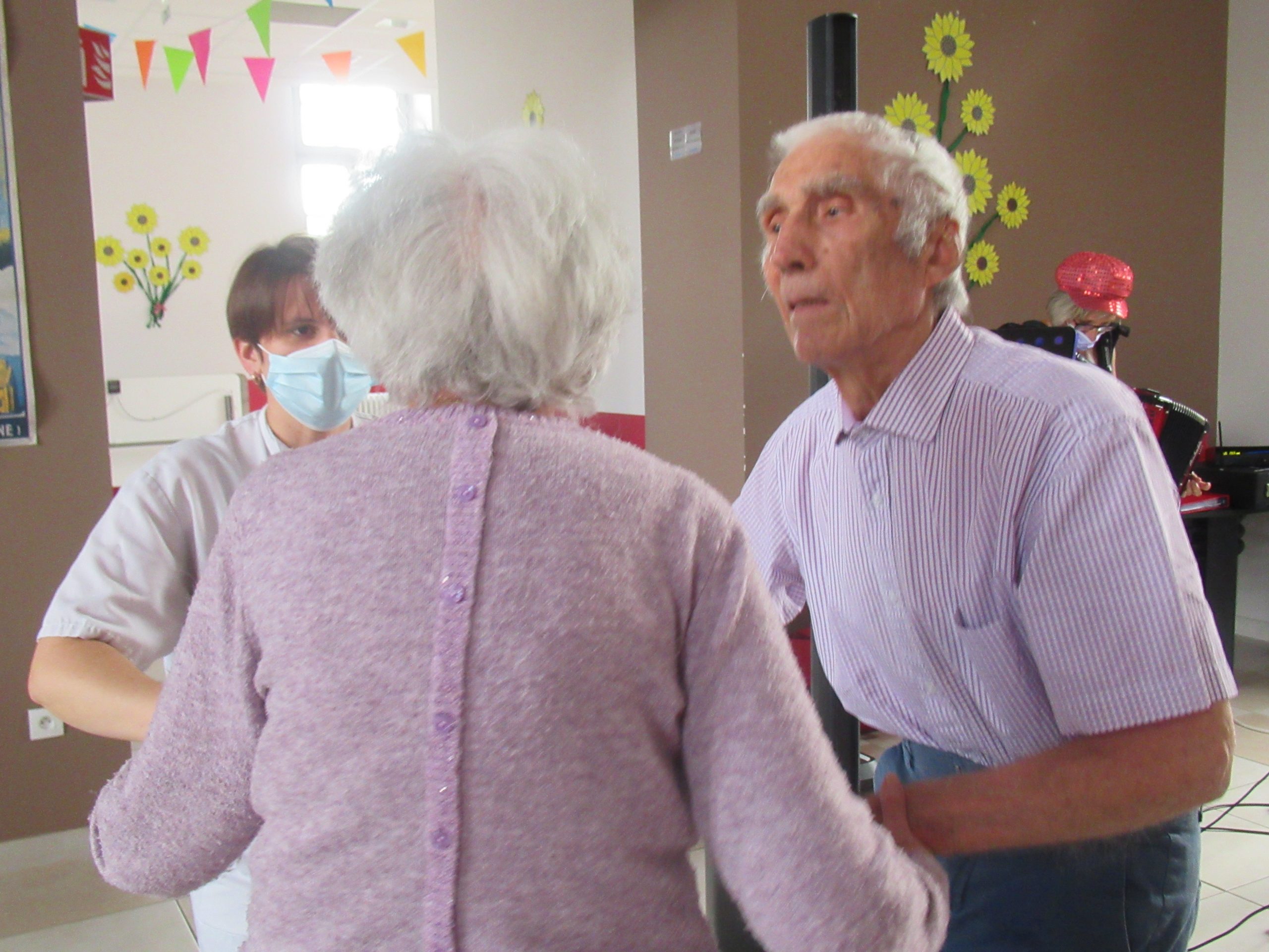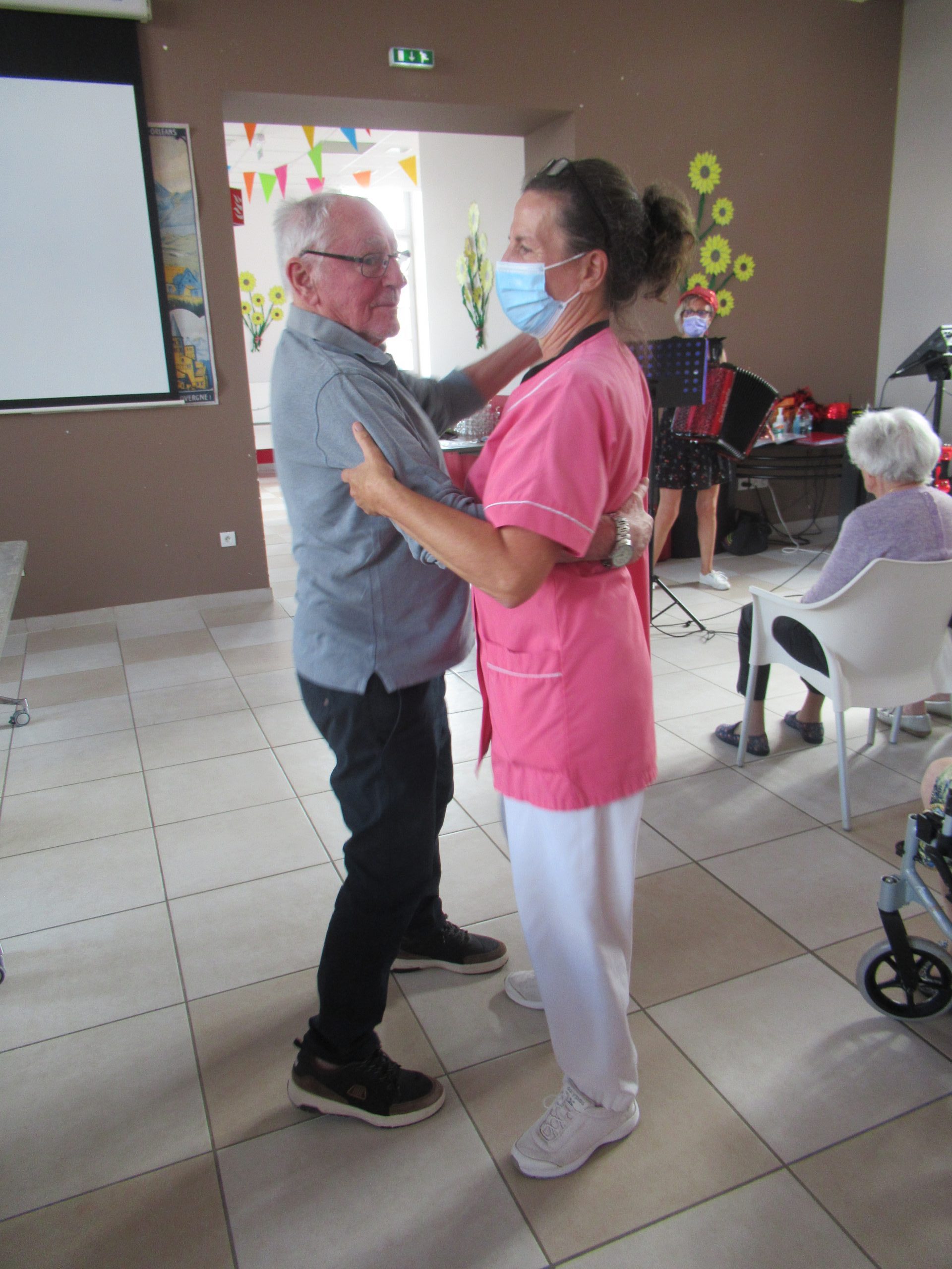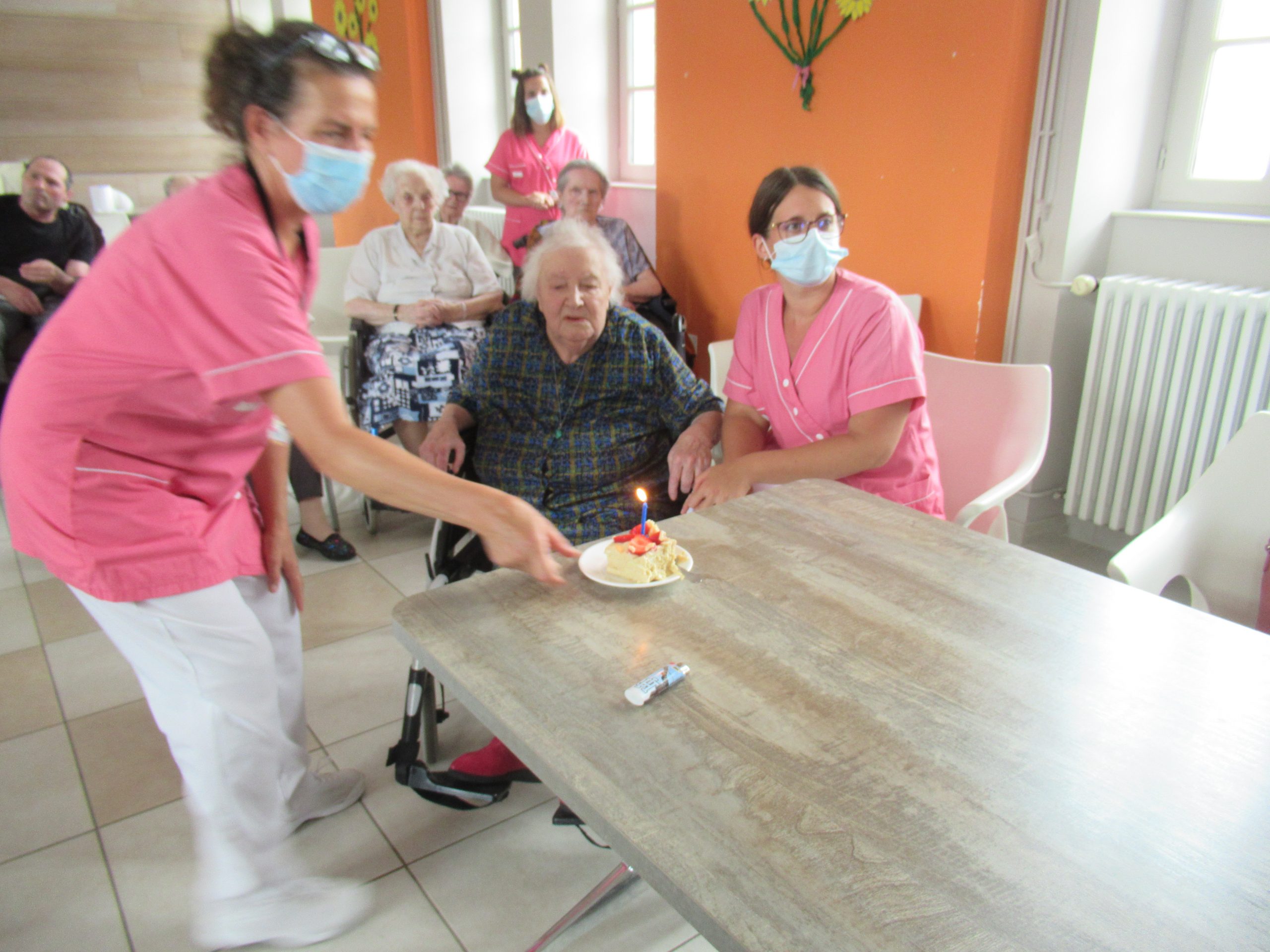 Les résidents fêtant leur anniversaire ce jour ont soufflé leurs bougies avant la dégustation de ce généreux gâteau. Ils étaient pour l’occasion accompagnés d’un membre de leur famille (seules les familles des résidents ayant fêté leur anniversaire au mois d’août ont pu assister à l’animation avec leur pass sanitaire).