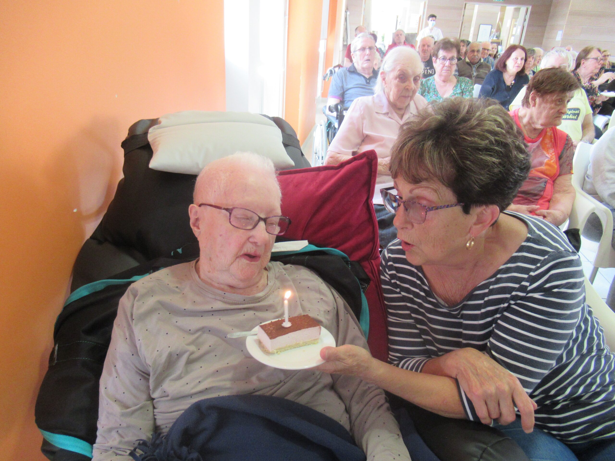 Vendredi 4 août nous avons fêté les anniversaires des personnes nées le mois de juillet. Elisabeth Alloie a animé l’après-midi musical. Et comme à chaque fois les danseurs ont enflammé la piste de danse. Les résidents concernés dont la doyenne de l’établissement (105 ans), ont ensuite souffler leurs bougies.