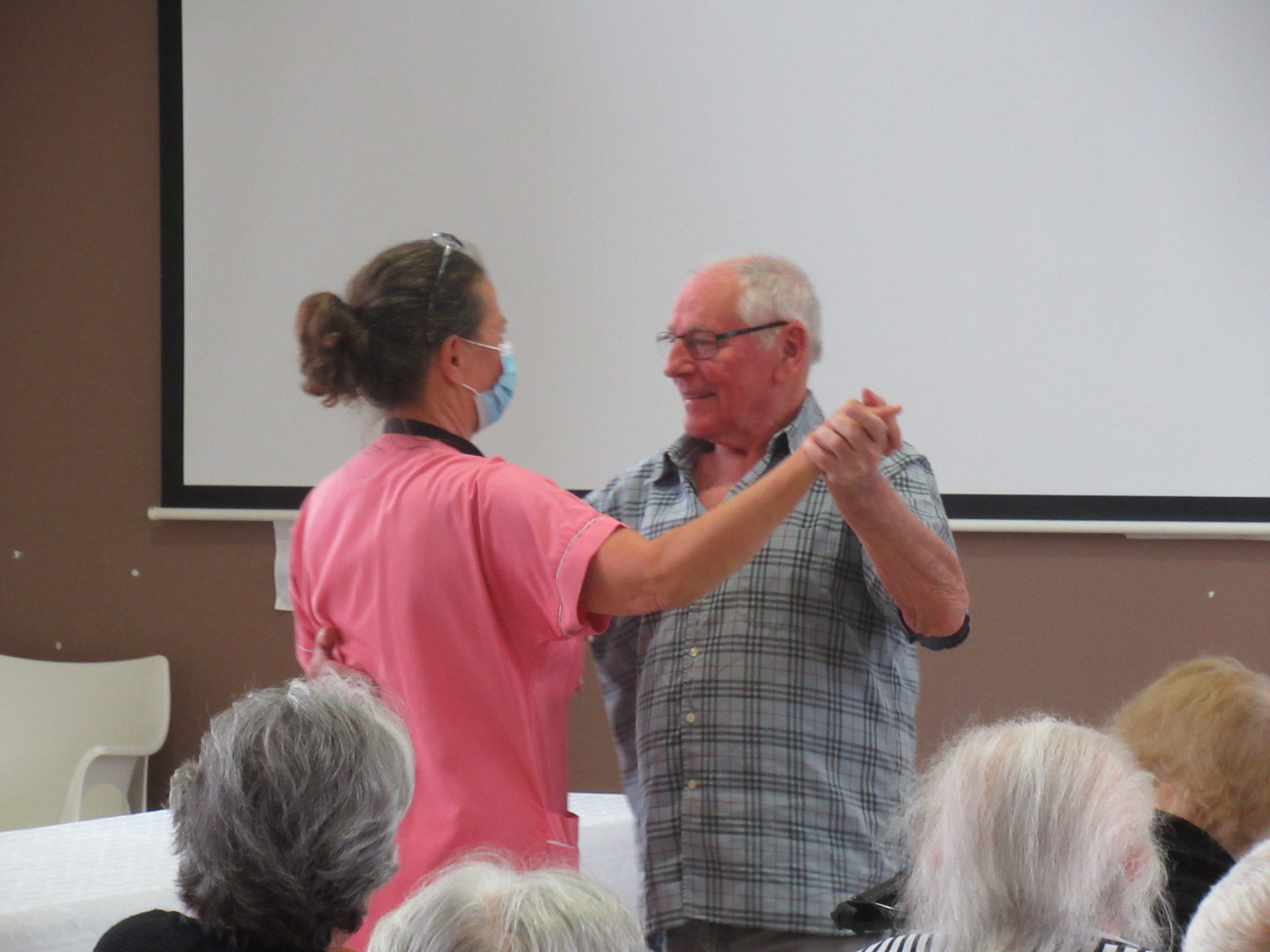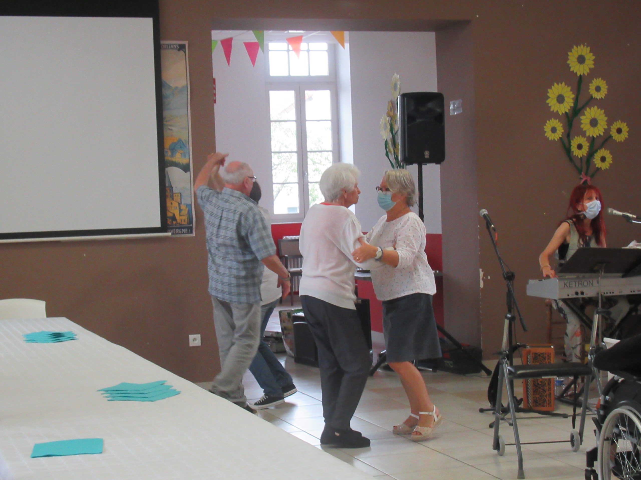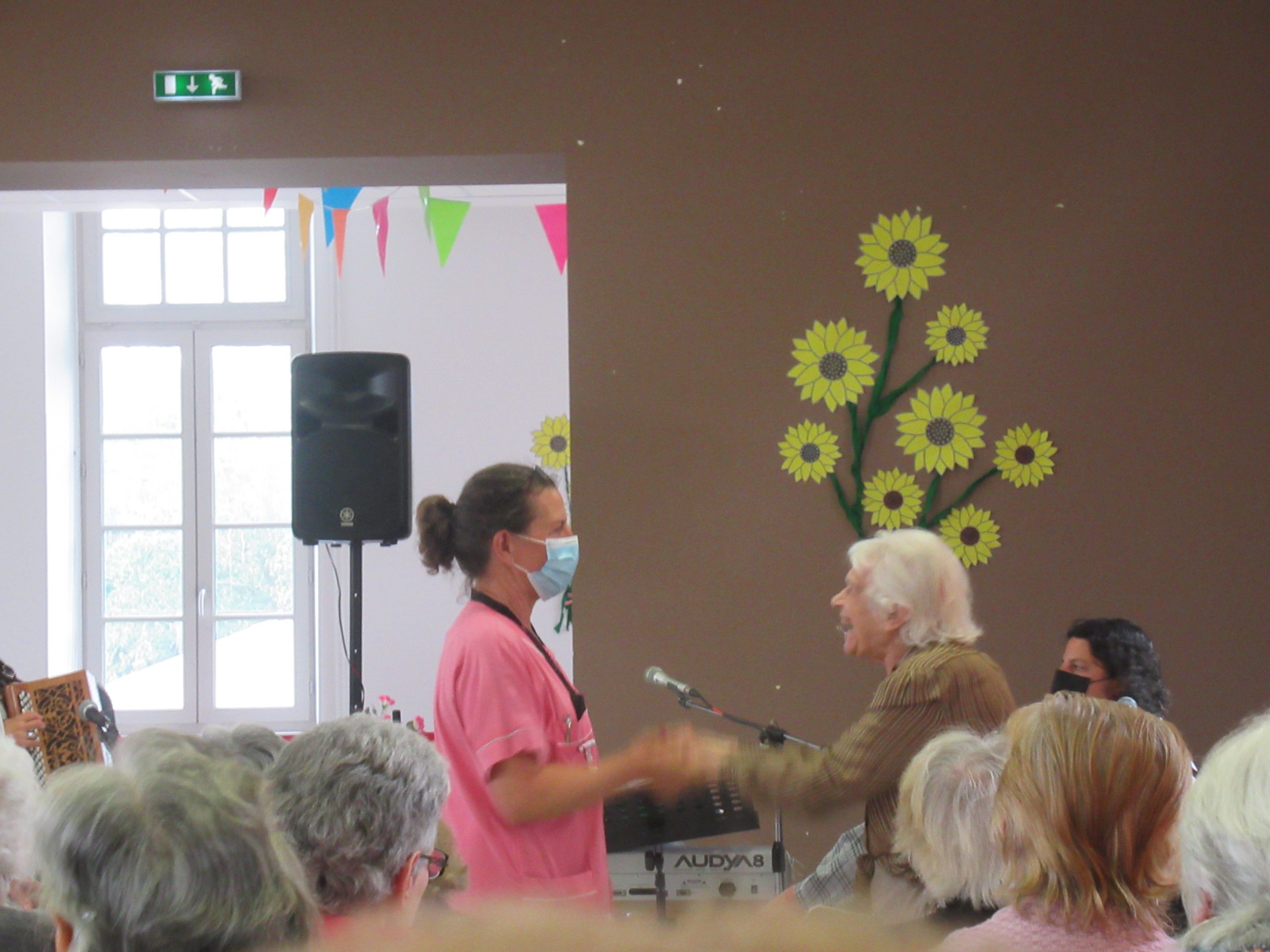 Résultats des résidents épanouis, poussant la chansonnette et faisant quelques pas de danse sur la piste. Et petit bonheur supplémentaire pour ceux qui fêtaient leur anniversaire, ils ont pu le faire en famille. En effet, nous avons enfin pu accueillir quelques familles sur ce temps d’animation ce qui n’était pas arrivé depuis 18 mois, depuis le début de cette pandémie qui n’en finit pas.