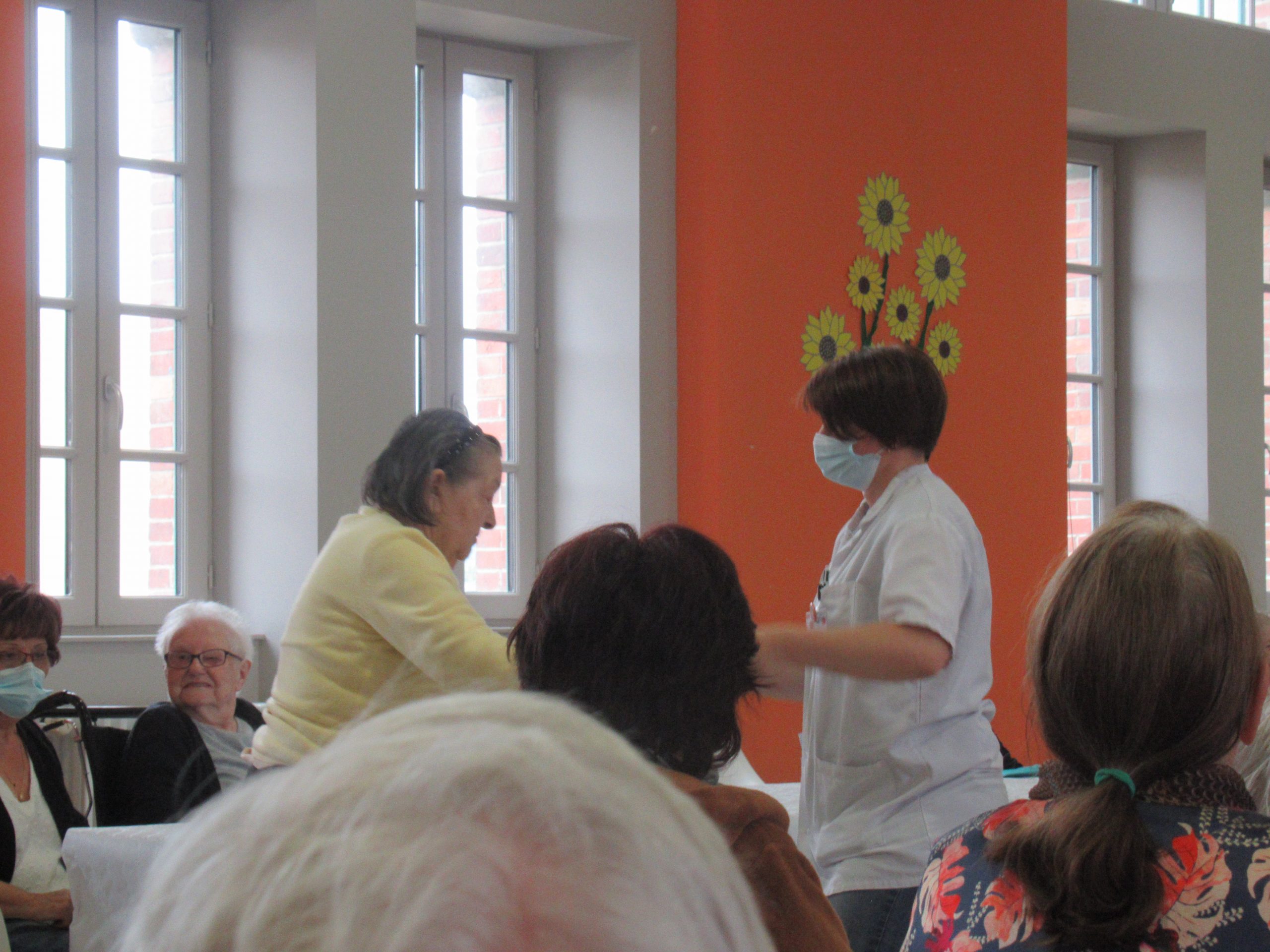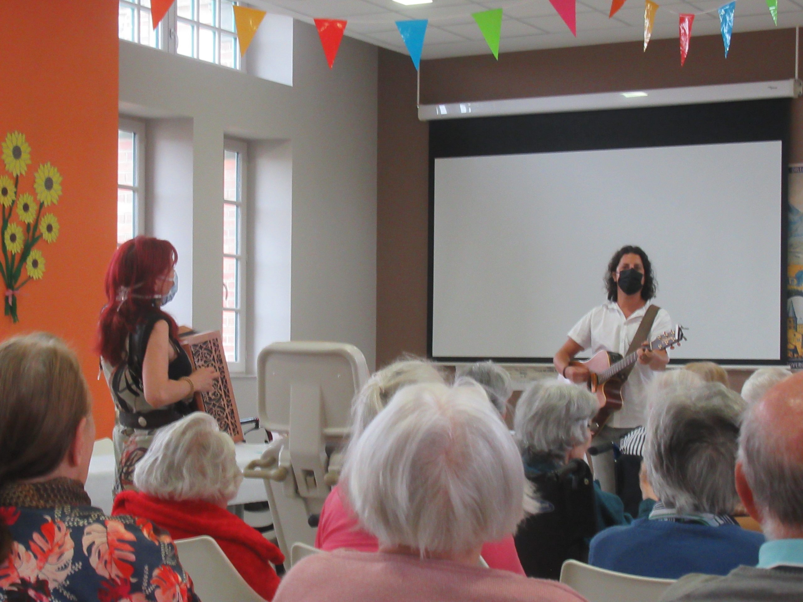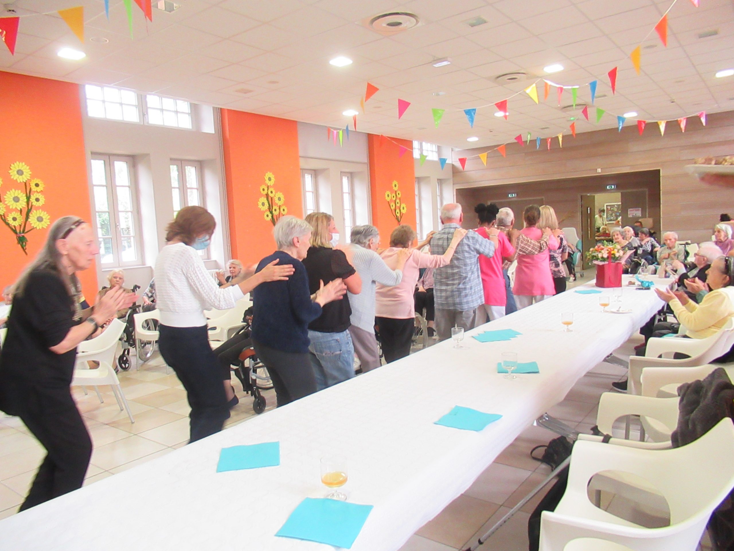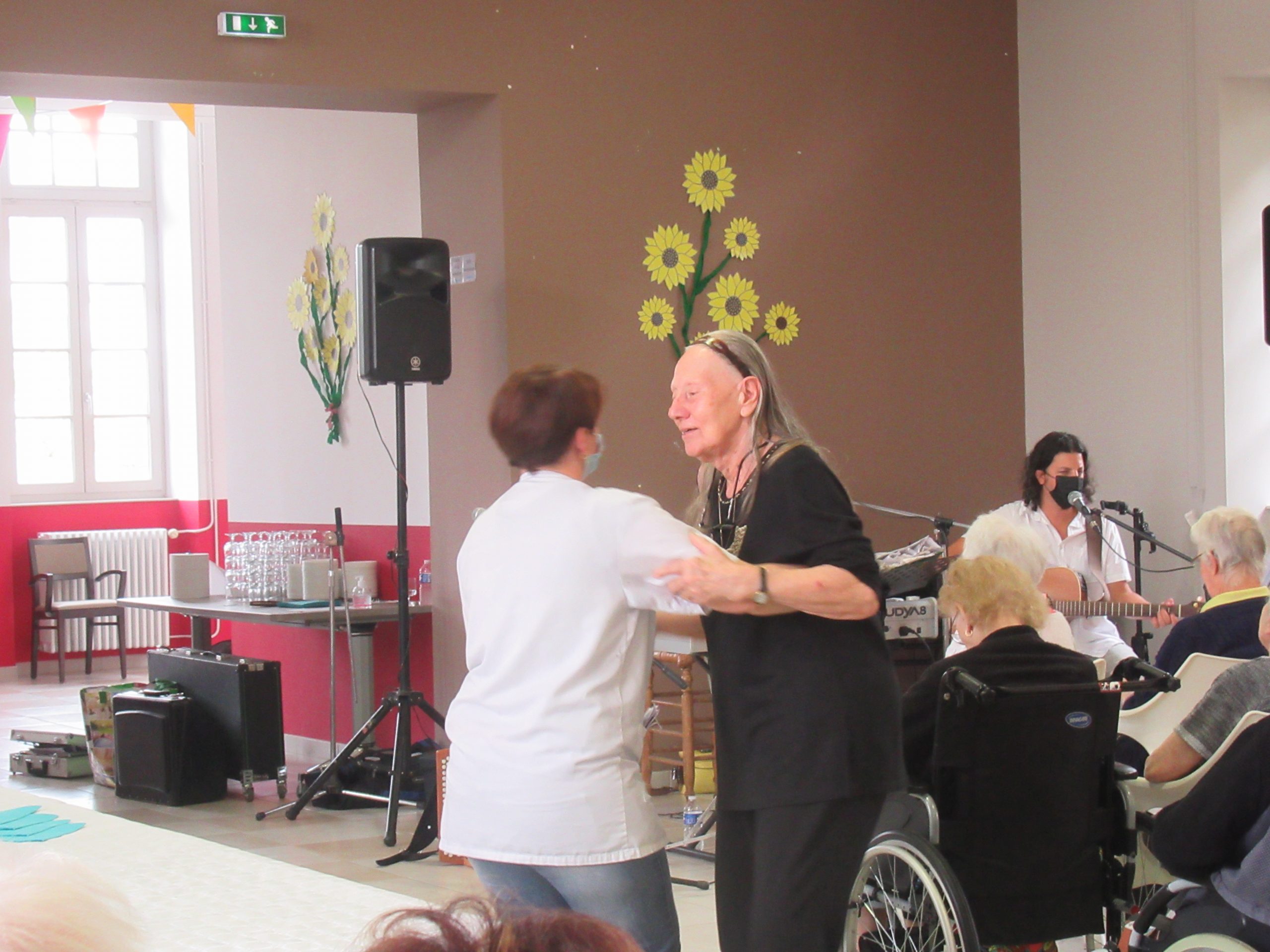 Résultats des résidents épanouis, poussant la chansonnette et faisant quelques pas de danse sur la piste. Et petit bonheur supplémentaire pour ceux qui fêtaient leur anniversaire, ils ont pu le faire en famille. En effet, nous avons enfin pu accueillir quelques familles sur ce temps d’animation ce qui n’était pas arrivé depuis 18 mois, depuis le début de cette pandémie qui n’en finit pas.