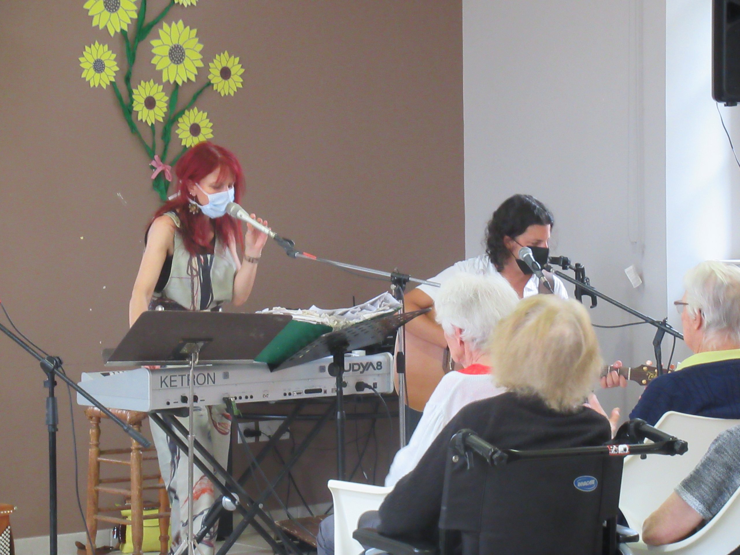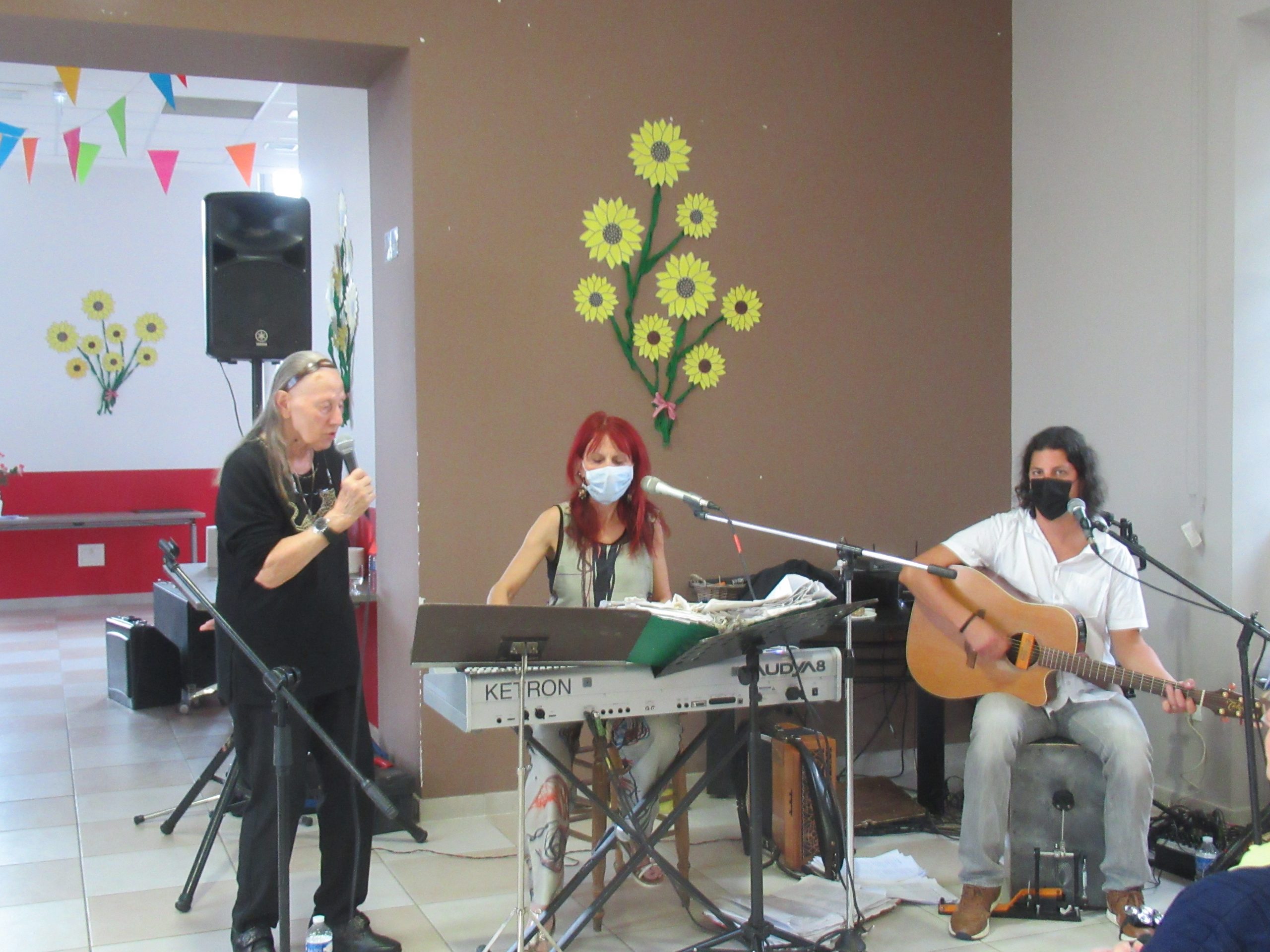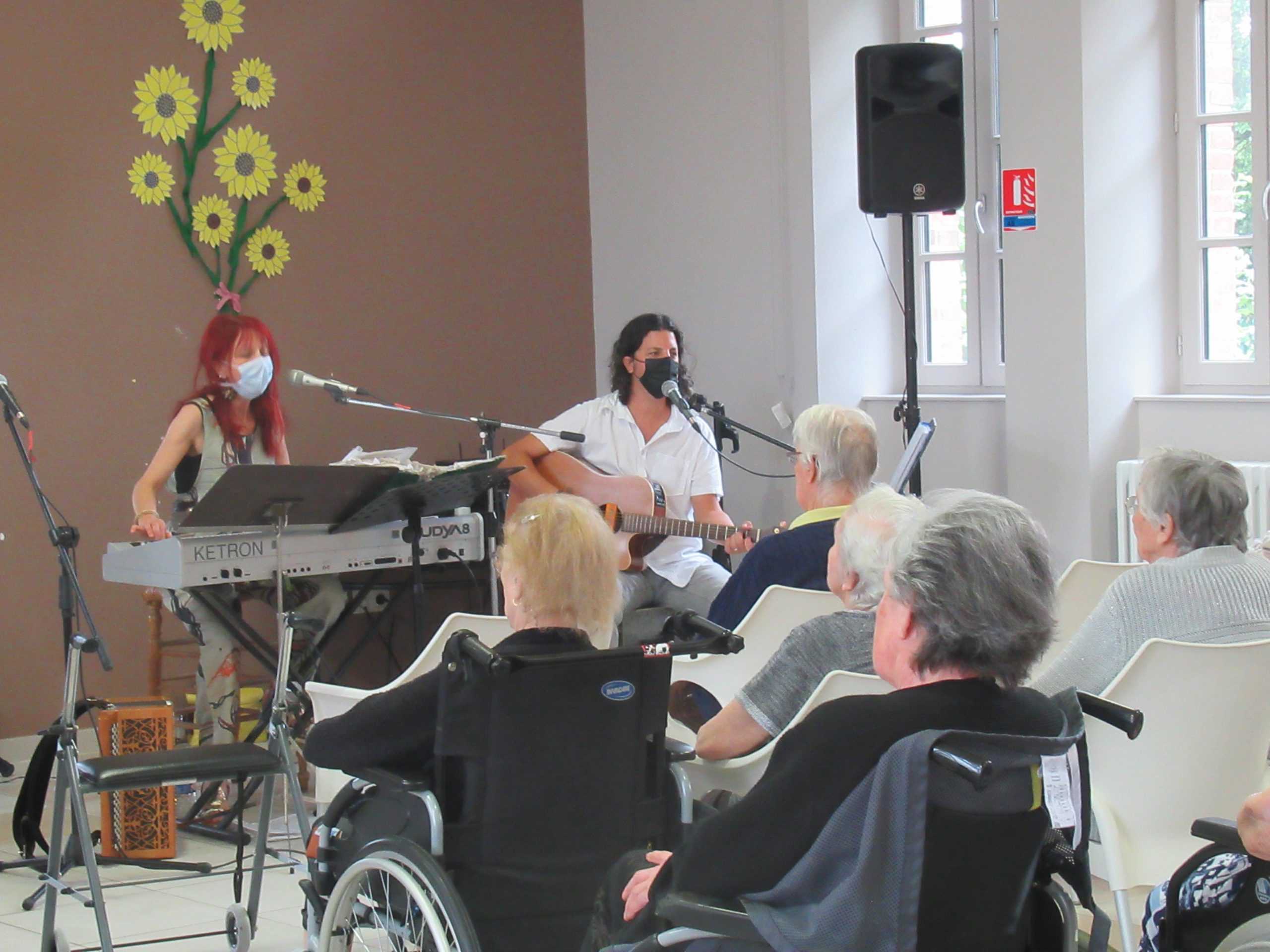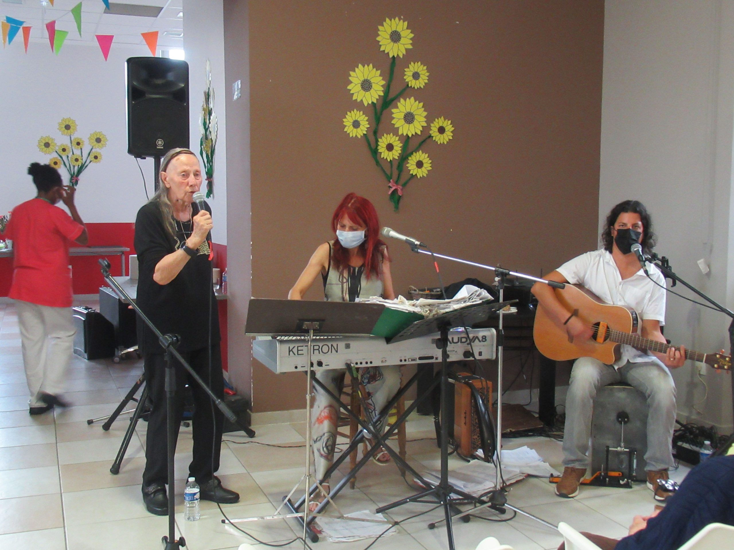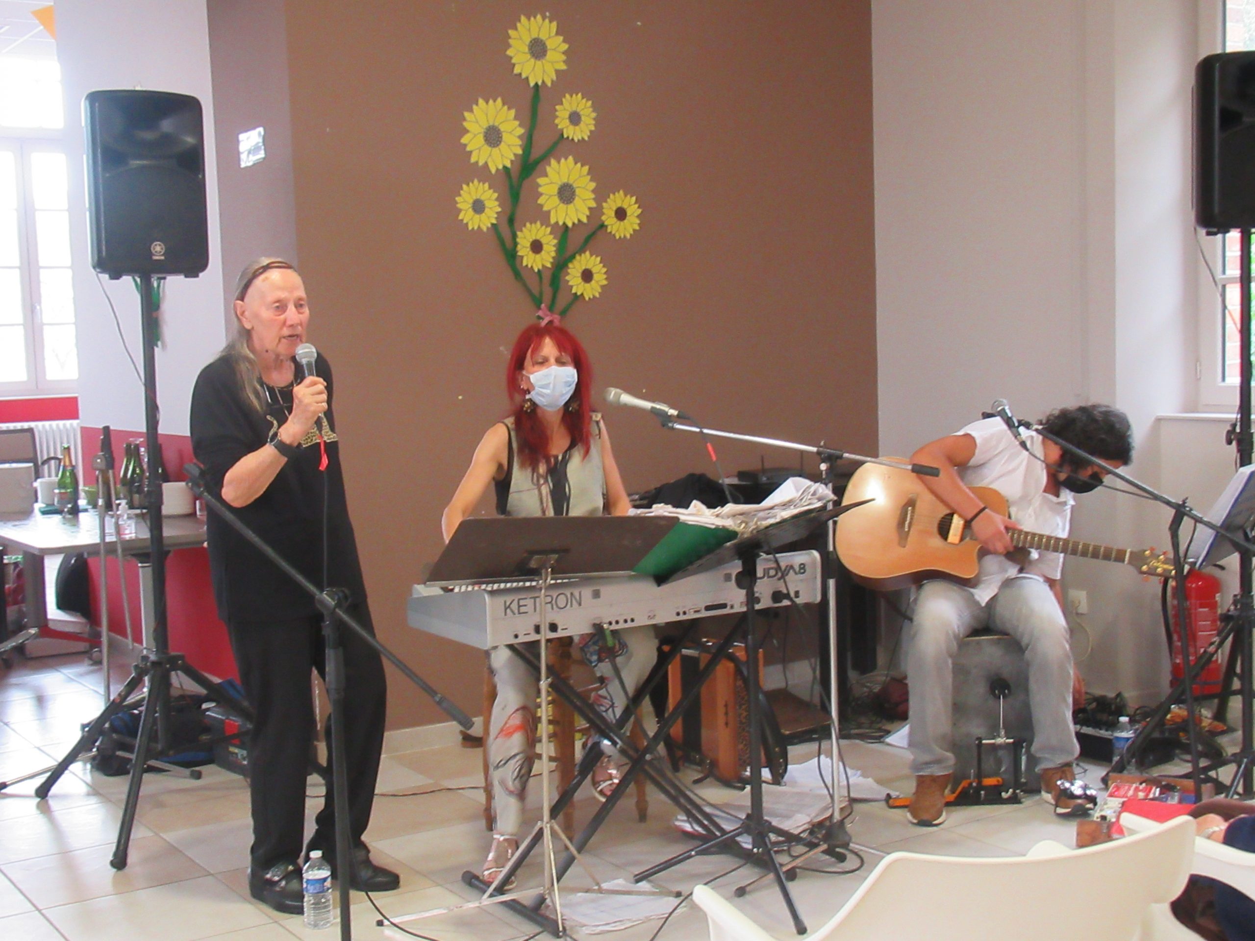 Mardi 3 août, nous avons fêté les anniversaires des résidents natifs de juillet. Une belle occasion de faire la fête au son de la musique et de déguster un bon gâteau. Pour la musique, c’est la formation musicale « Et ma musique » qui a su avec brio mettre l’ambiance tout au long de l’après-midi.