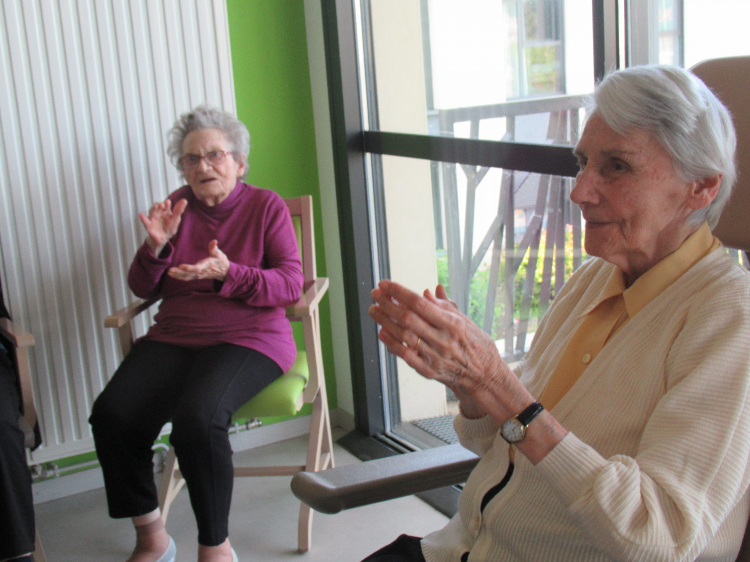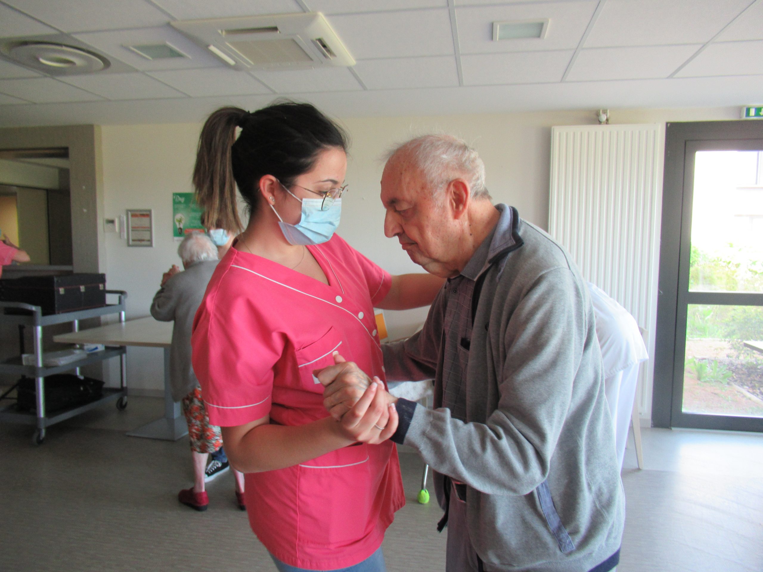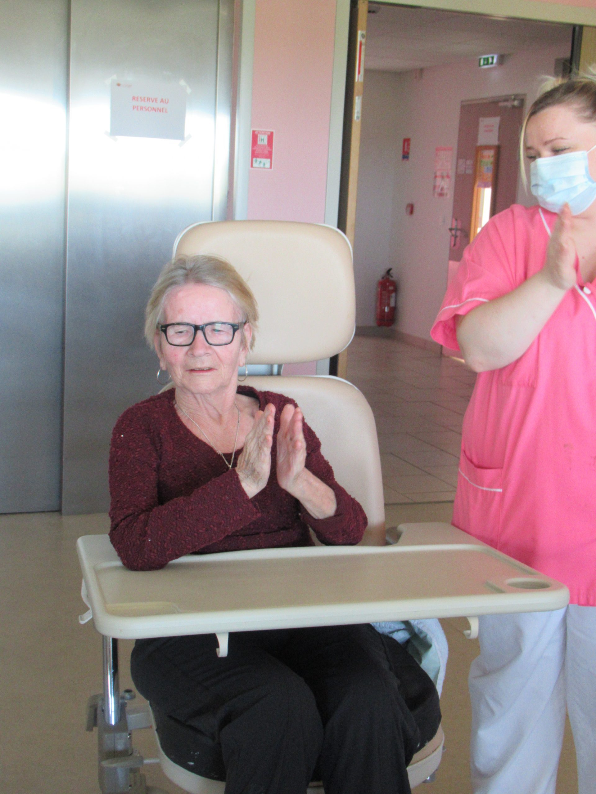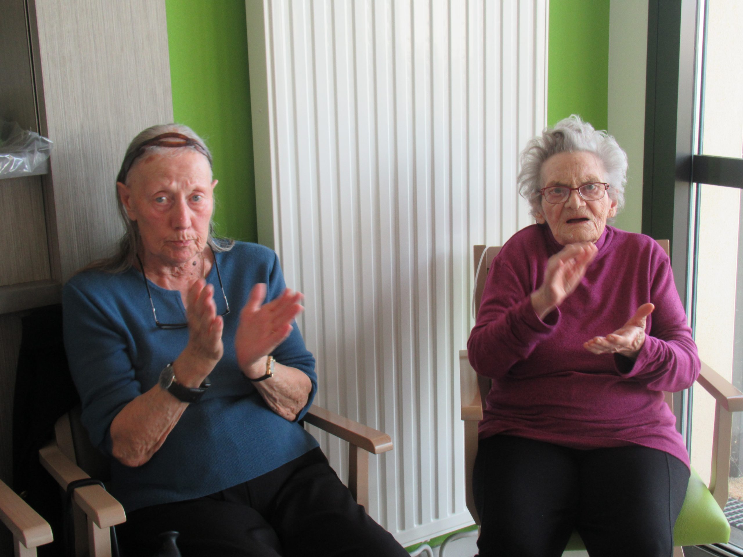 Côté musique, la tâche a été confiée ce mois-ci à une jeune accordéoniste, Cathy Penot. Son énergie et sa bonne humeur ont vite entraîné résidents et personnels sur la piste de danse. La musicienne a également proposé aux spectateurs quelques petits jeux de rythmiques : taper des mains en rythme, taper du pied lors d’une bourrée endiablée, etc…