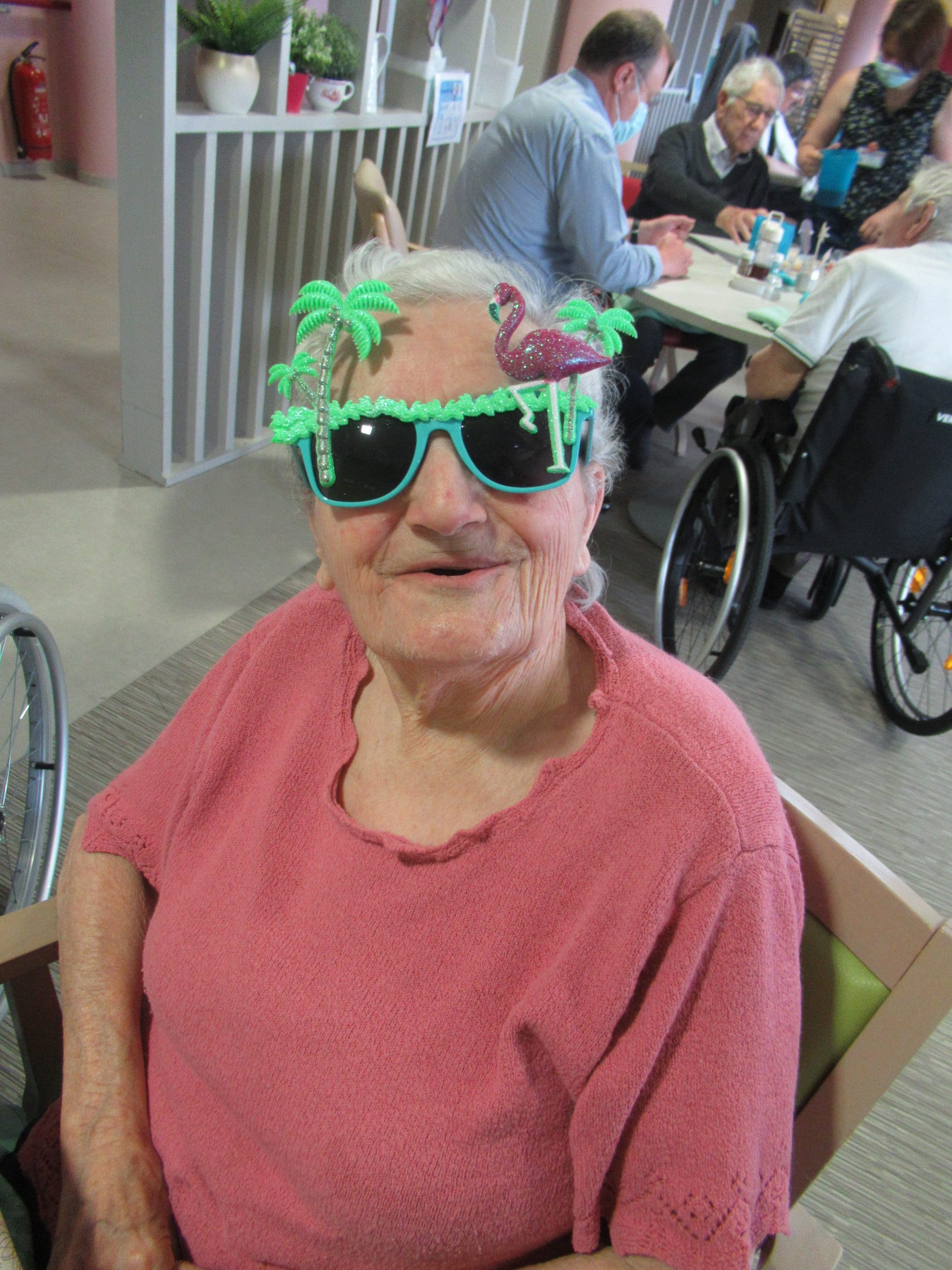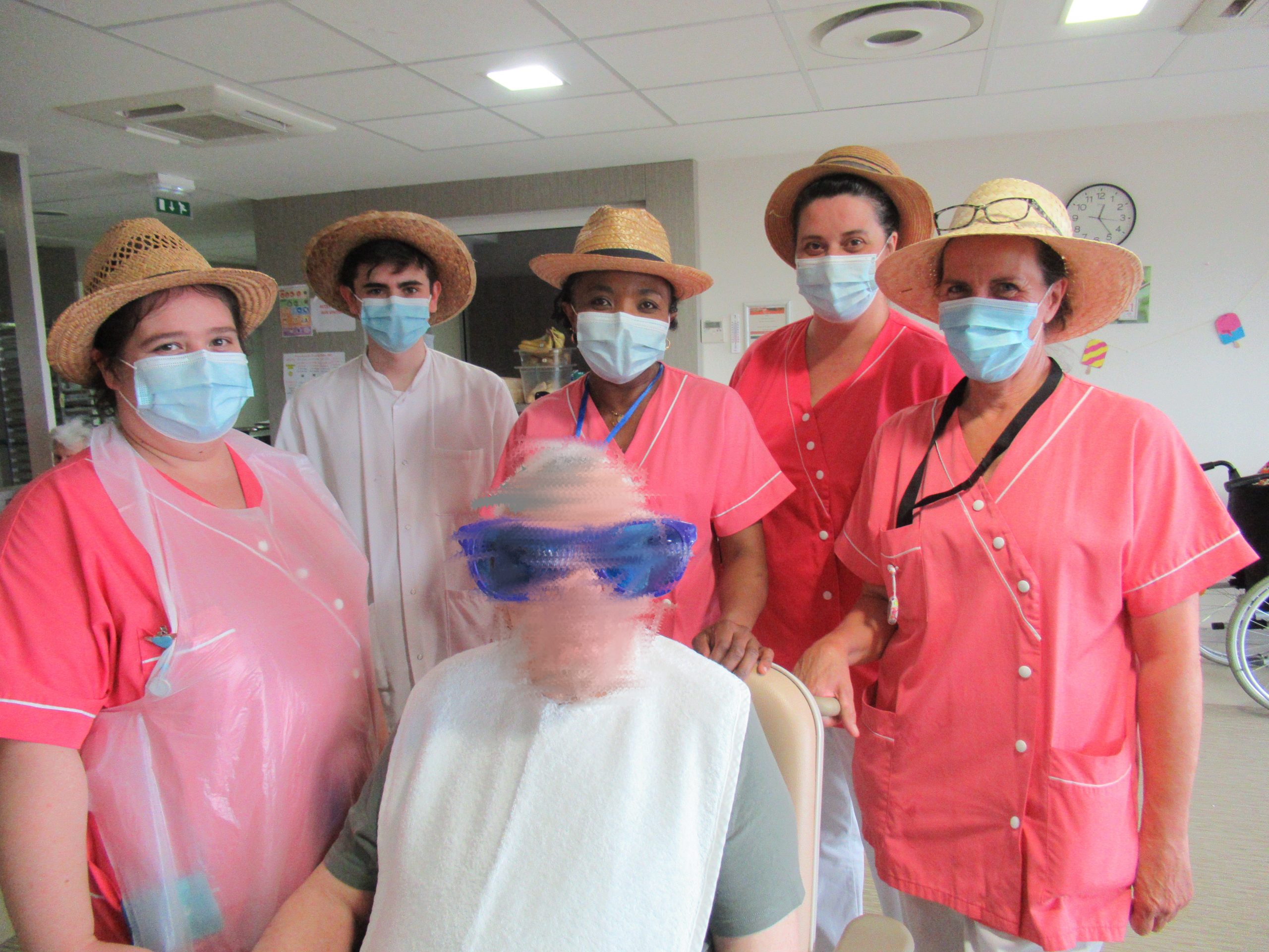 Lors du repas de midi, le chef avait concocté un menu avec quelques saveurs estivales : melon en entrée et fraises en dessert. L’équipe d’animation a même pu déjeuner avec les résidents ce jour au vu de l’amélioration de la situation sanitaire.