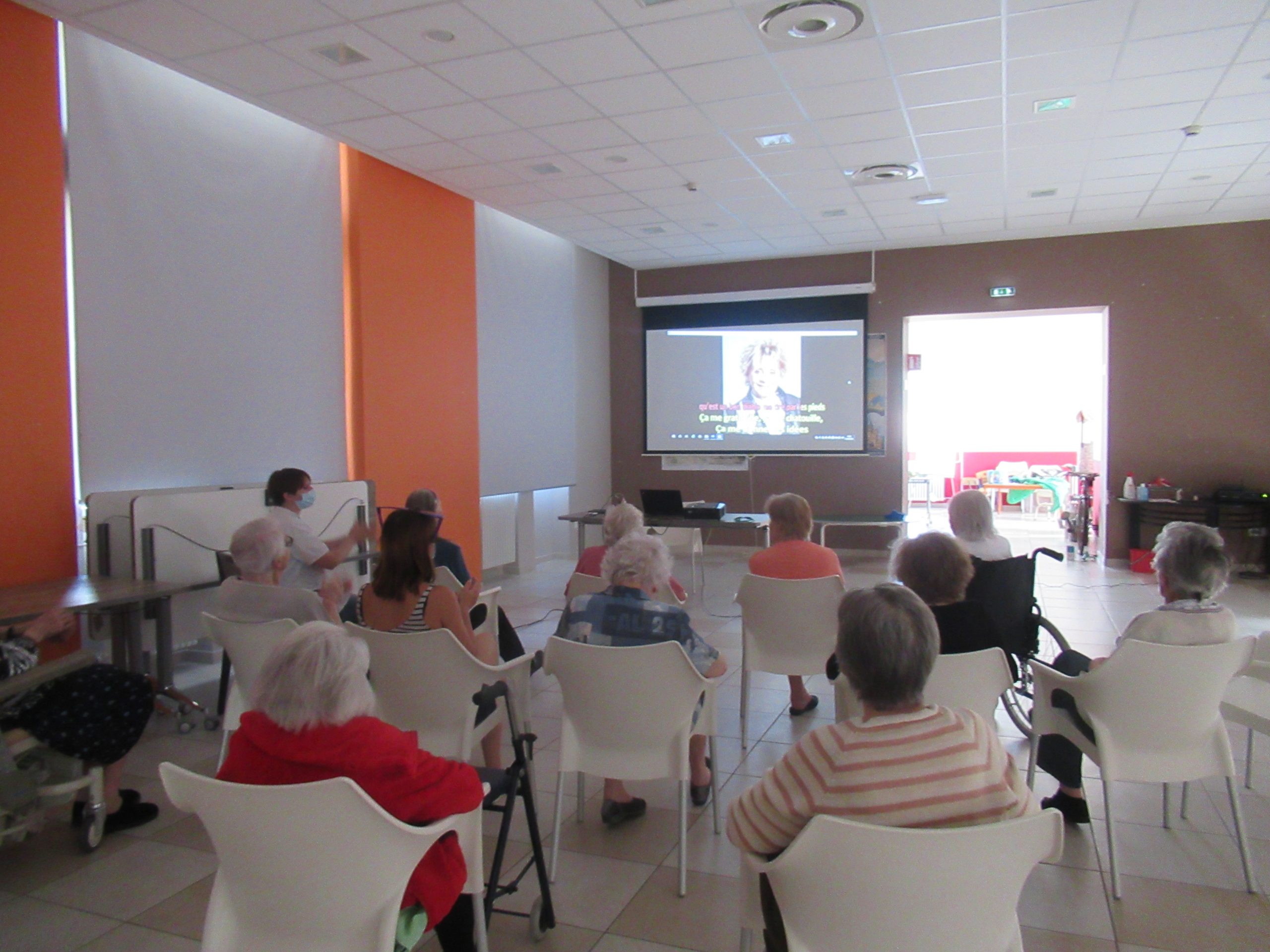 L’après-midi a été consacré à la musique. Nous avons relancé l’activité « karaoké ». Les résidents se sont essayés à pousser la chansonnette sur des airs d’autrefois mais aussi sur des musiques plus contemporaines.