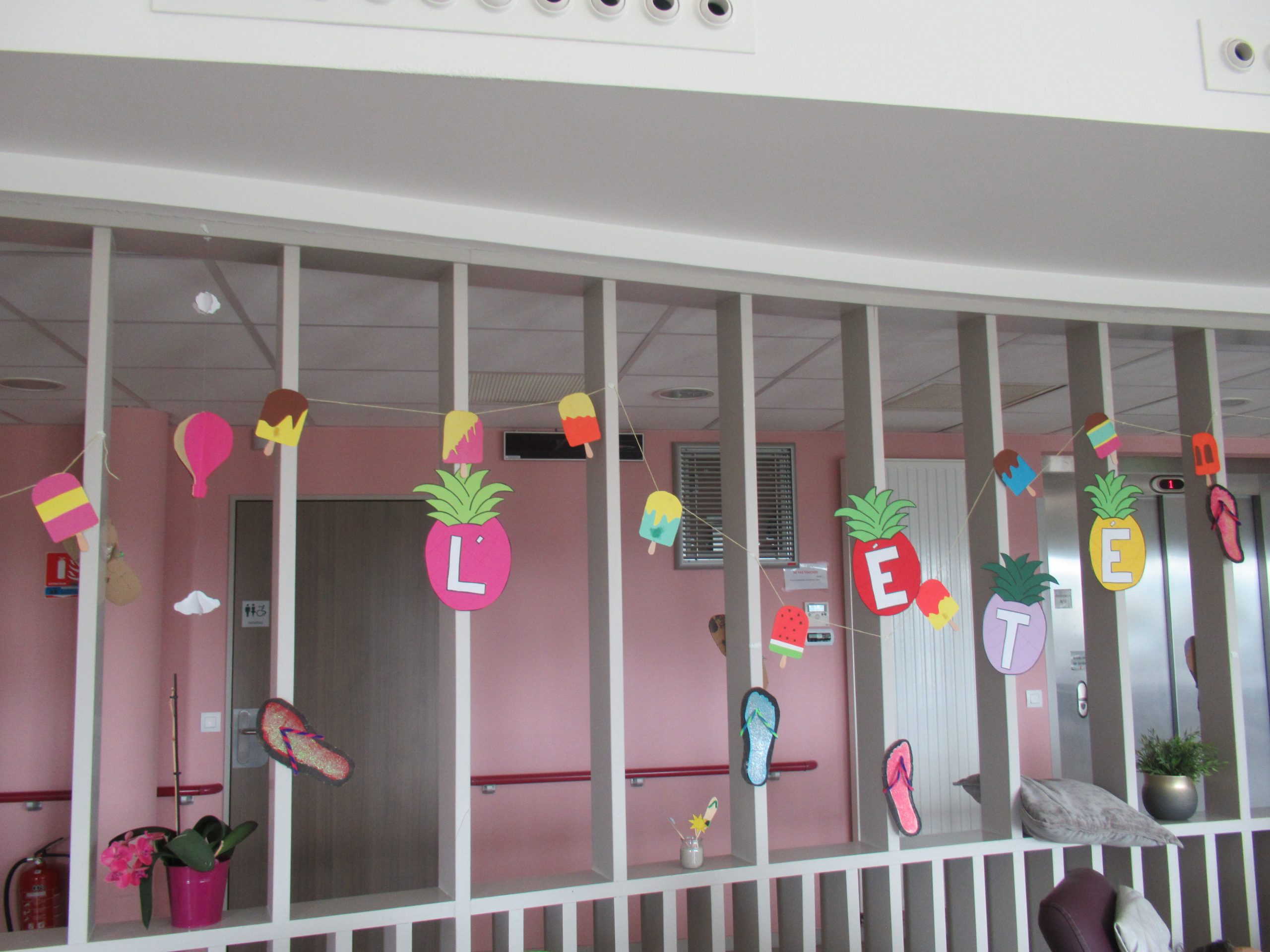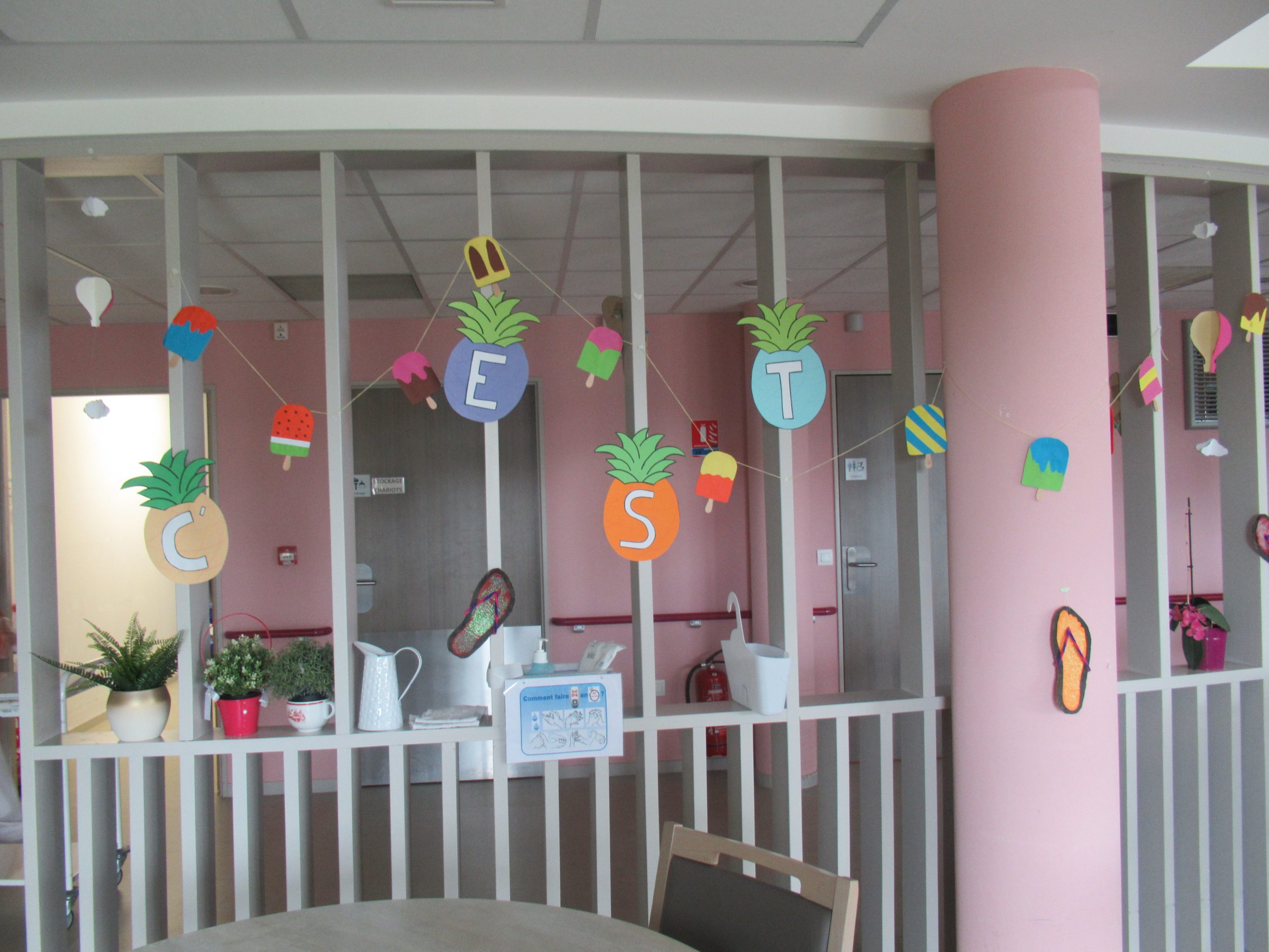 Lundi 21 juin, nous avons fêté l’arrivée de l’été et la fête de la musique. La matinée, les décorations estivales ont été installées. Pleines de couleurs, elles ont dynamisé les salles communes.