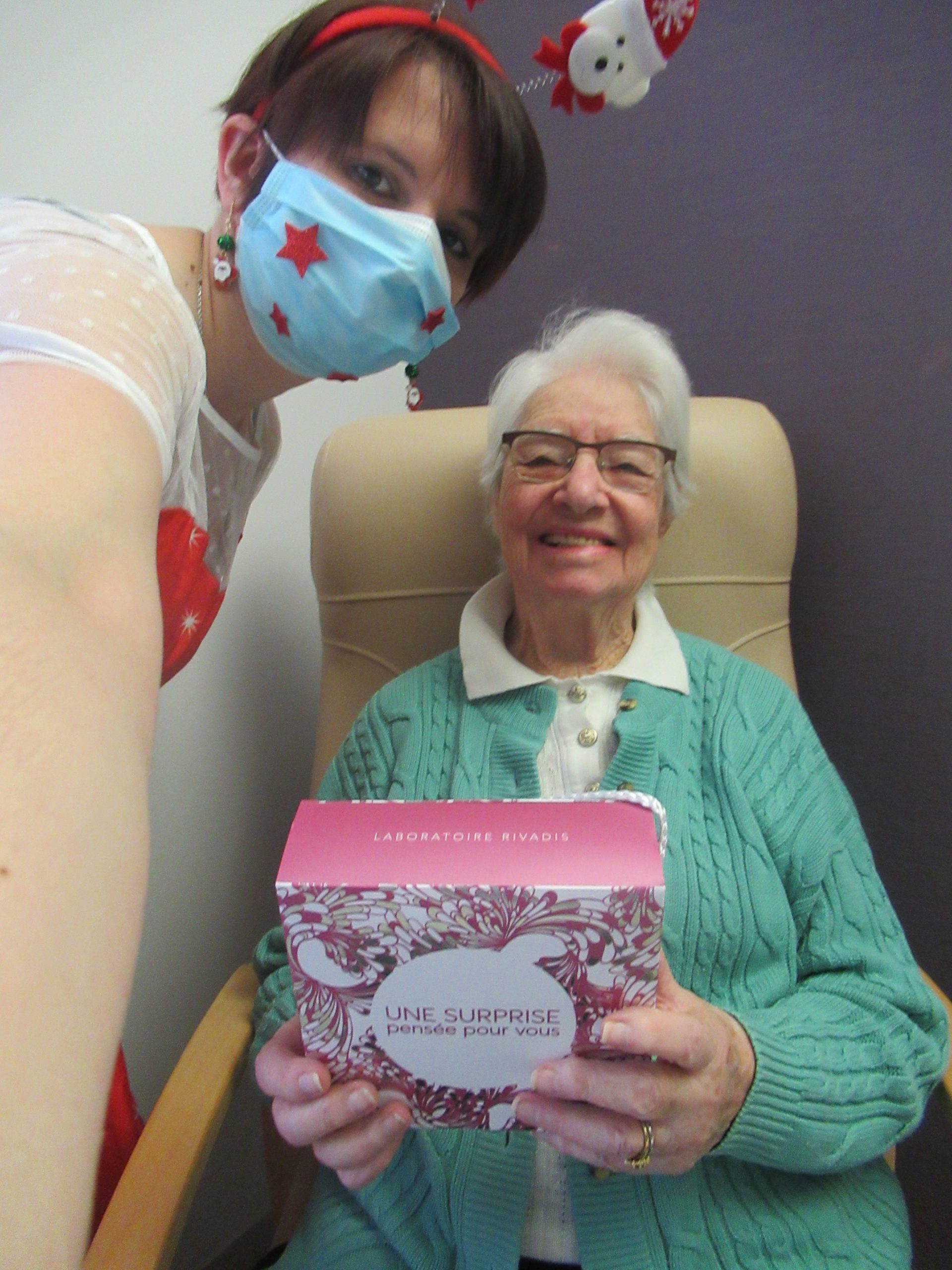 Le matin, la « mère Noël » a fait sa tournée dans les différents services. Chacun a eu un coffret de produits de toilette.