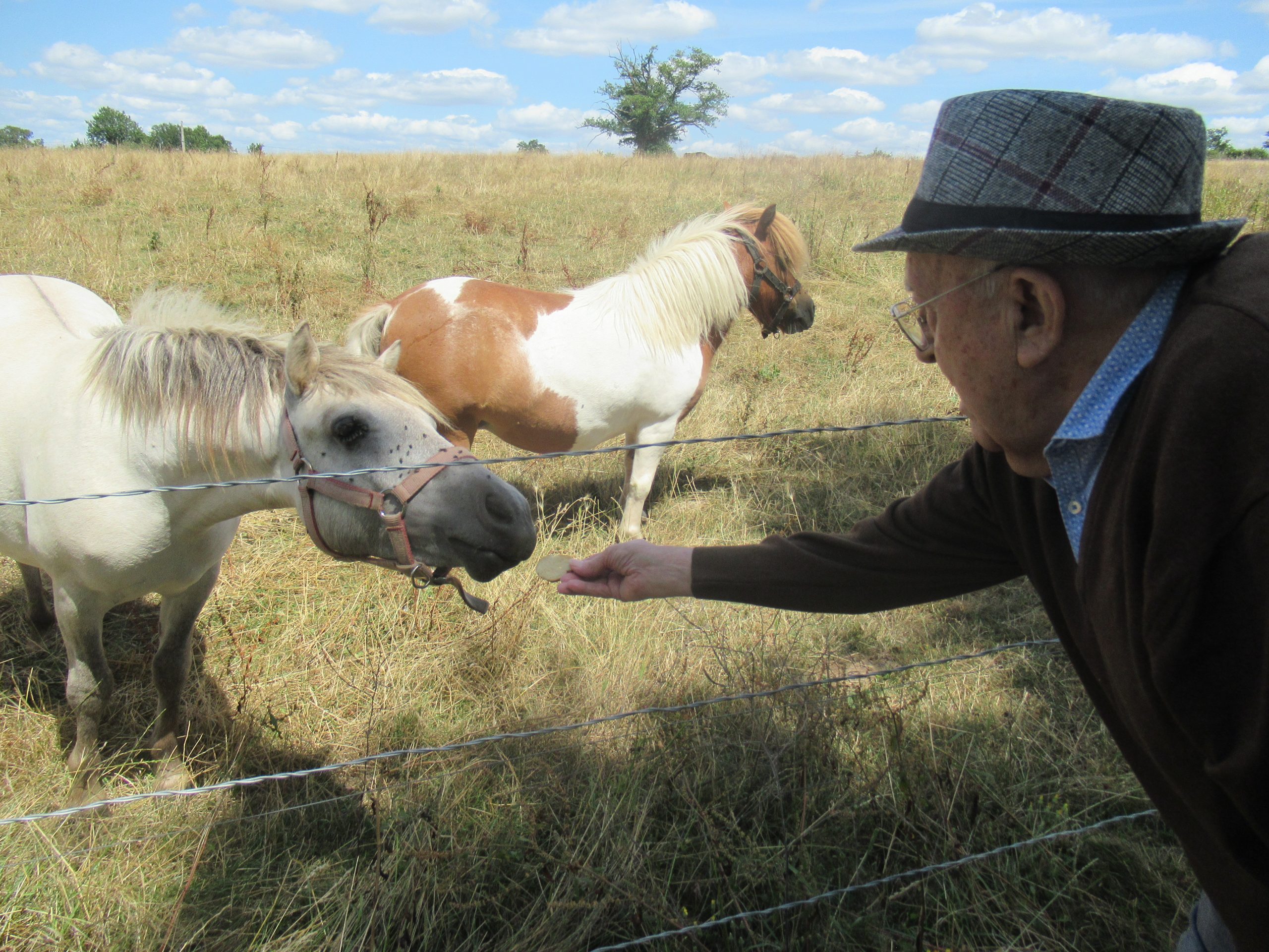 Après un bon repas, les résidents les plus alertes ont fait une balade à la rencontre des animaux rares et magnifiques du domaine de la Ganne.