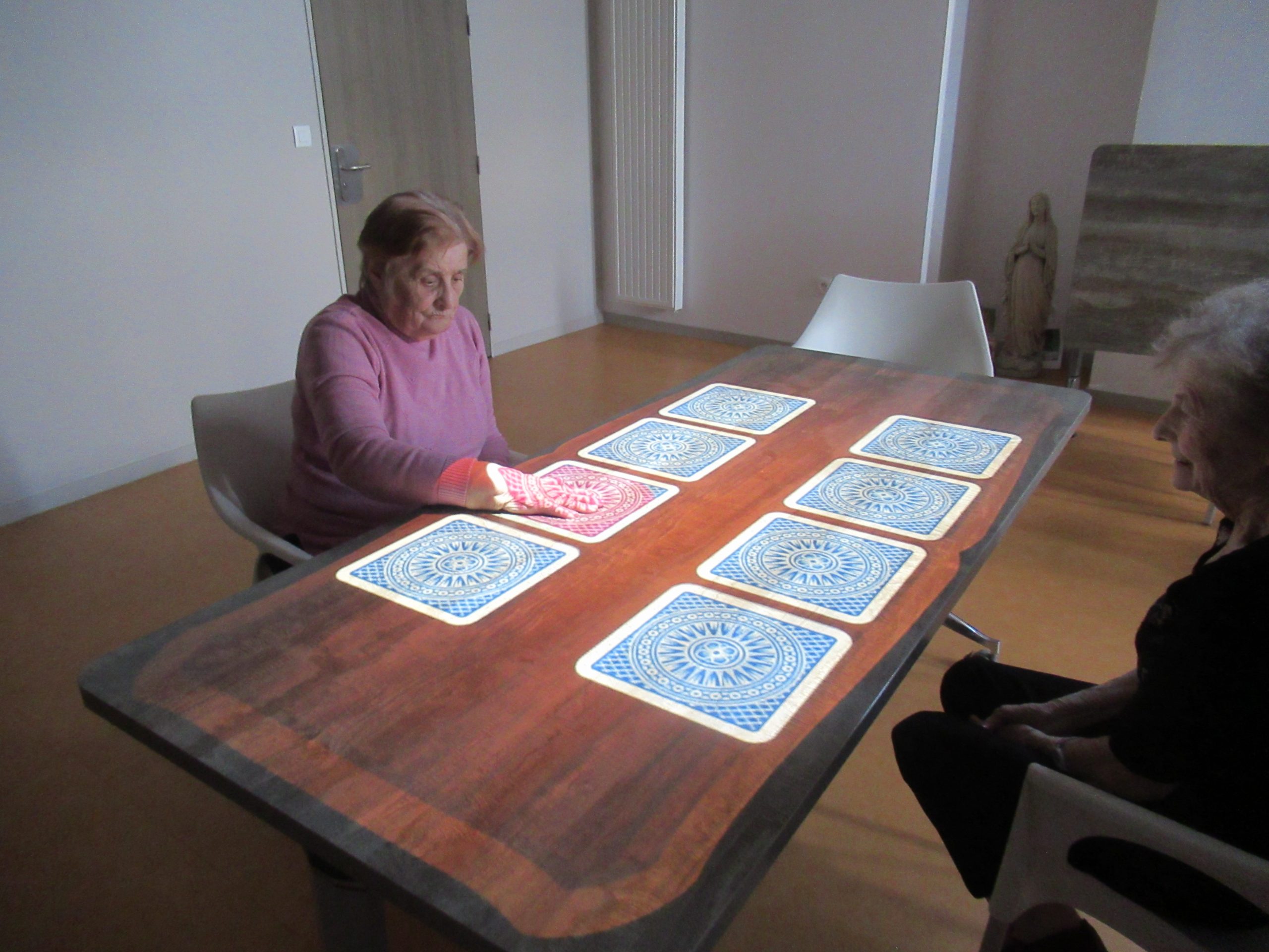 Depuis l’établissement a pu, grâce à une subvention, investir dans un tout nouvel équipement technologique, la Tovertafel. Cette nouvelle technologie est un outil thérapeutique non médicamenteux conçu pour les personnes atteintes de démence, afin que celles-ci sortent de leur enfermement et de leur état d’apathie. La « tovertafel » ou « table magique » est le résultat d’une recherche et d’une volonté constante d’améliorer la qualité de vie des personnes âgées. Elaborée grâce à la recherche scientifique et en collaboration avec des universités internationales, la tovertafel a été développée aux Pays-Bas par l’ingénieur Hester Le Riche.