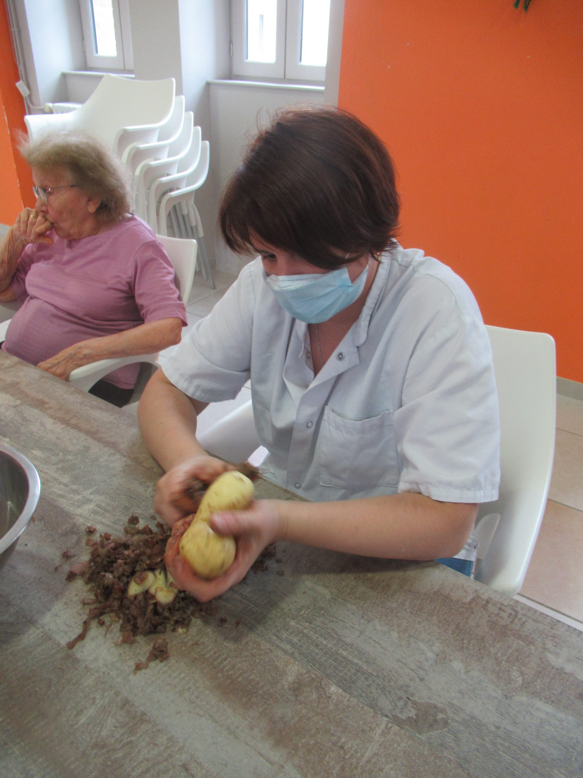 Mardi 27 juillet, des résidents, accompagnés par l’animatrice et la psychologue, ont préparé leur repas du soir dans l’espace « cuisine thérapeutique » de la salle d’activités.