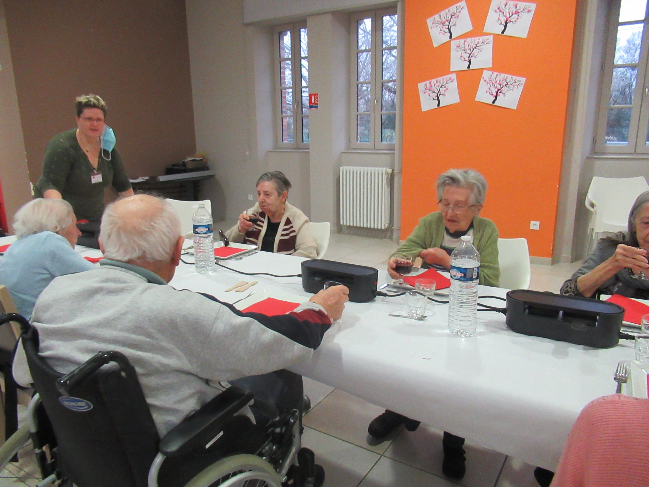 Une petite soirée festive a eu lieu à la maison de retraite le 17 mars dernier. Des résidents (tous du service du RDC, covid oblige) ont pris place en salle d’animation à 18h pour dîner en compagnie de l’animatrice et de la psychologue. Quelques heures avant le début de la soirée quelques courageux et amateurs de cuisine avaient oeuvré derrière les fourneaux pour préparer différents mets.