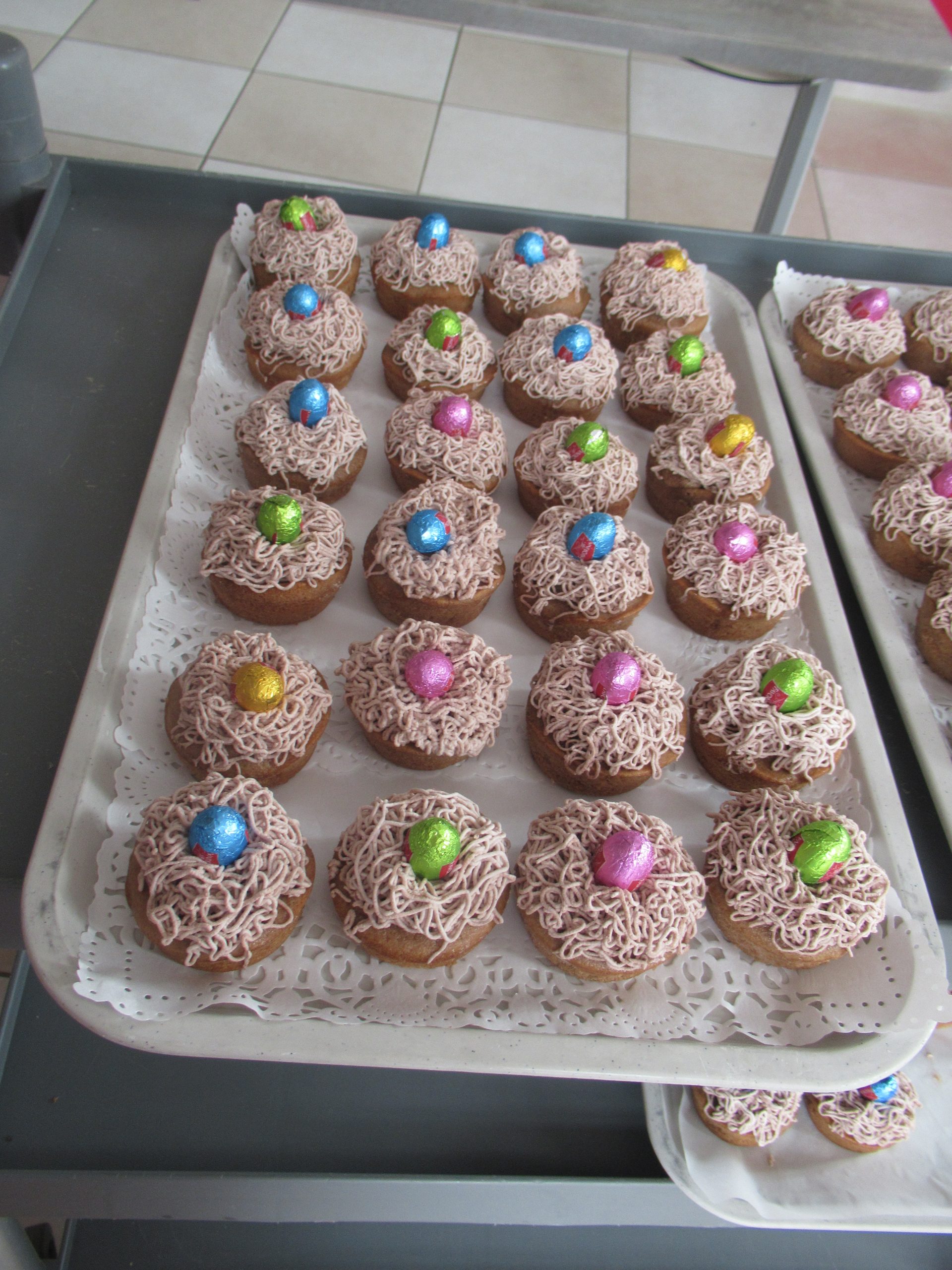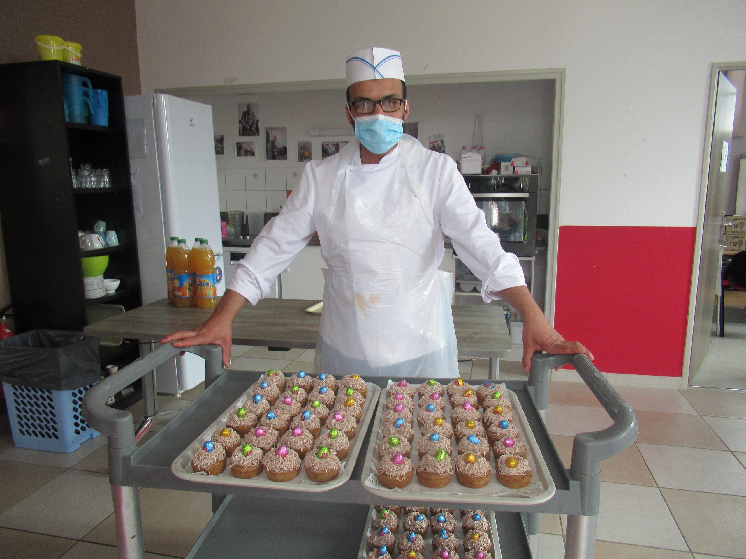 A la fin, résidents comme enfants ont pu déguster un excellent goûter offert par le Centre social et l’EHPAD. Les gâteaux ont été faits « maison » par le cuisinier de l’EHPAD, de petits cupcakes en forme de nid. Rien de tel pour fêter l’arrivée de Pâques.